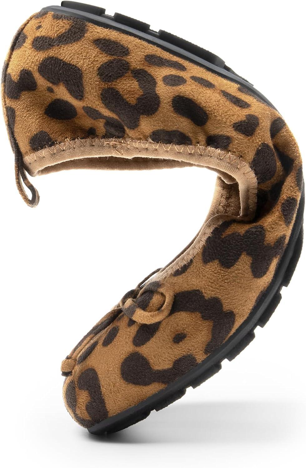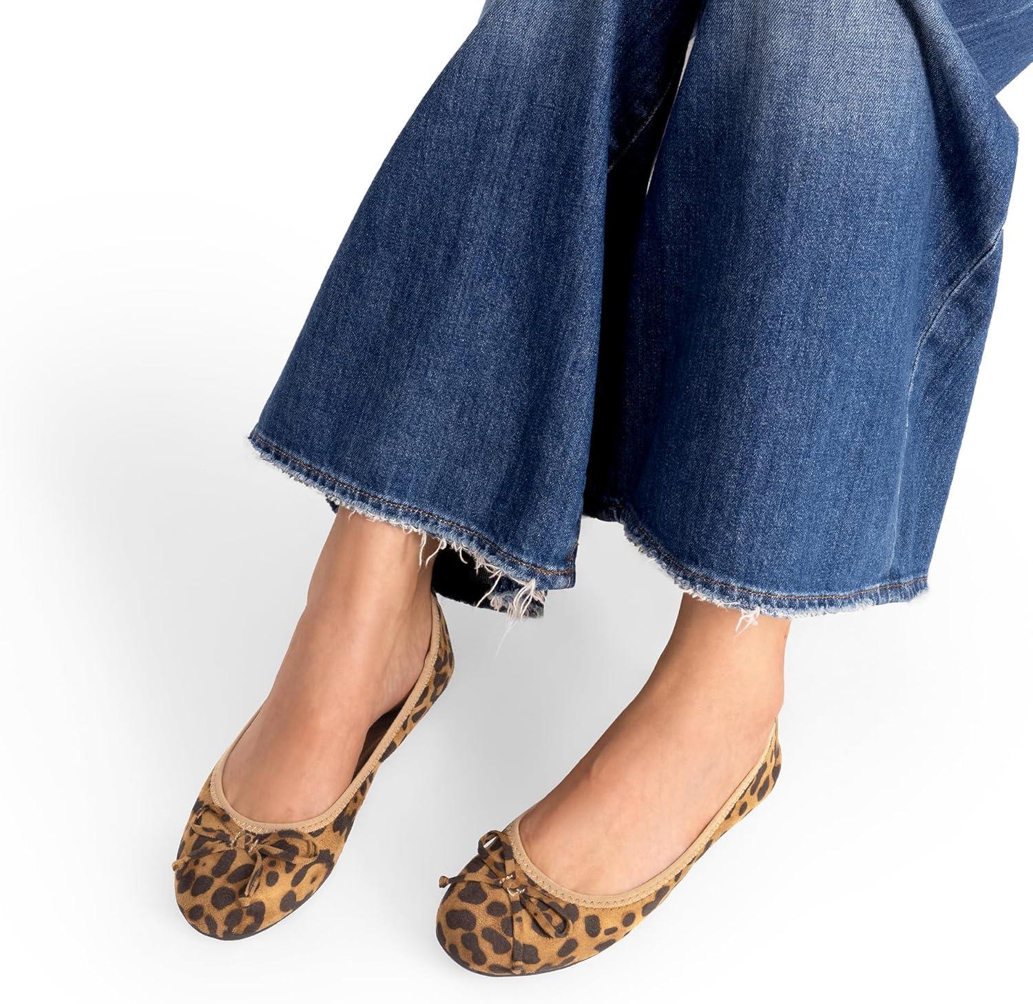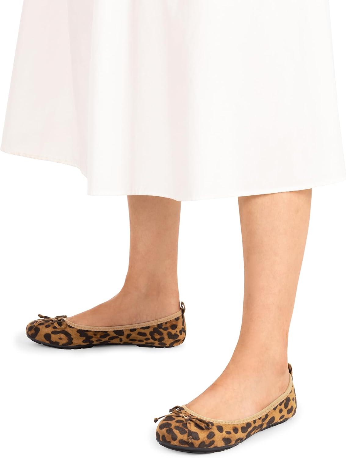 DREAM PAIRS Women’s Flats, Foldable Ballet Flats for Women, Bowknot Round Toe Comfort Light Weight Slip-On Dress Shoes(Leopard)