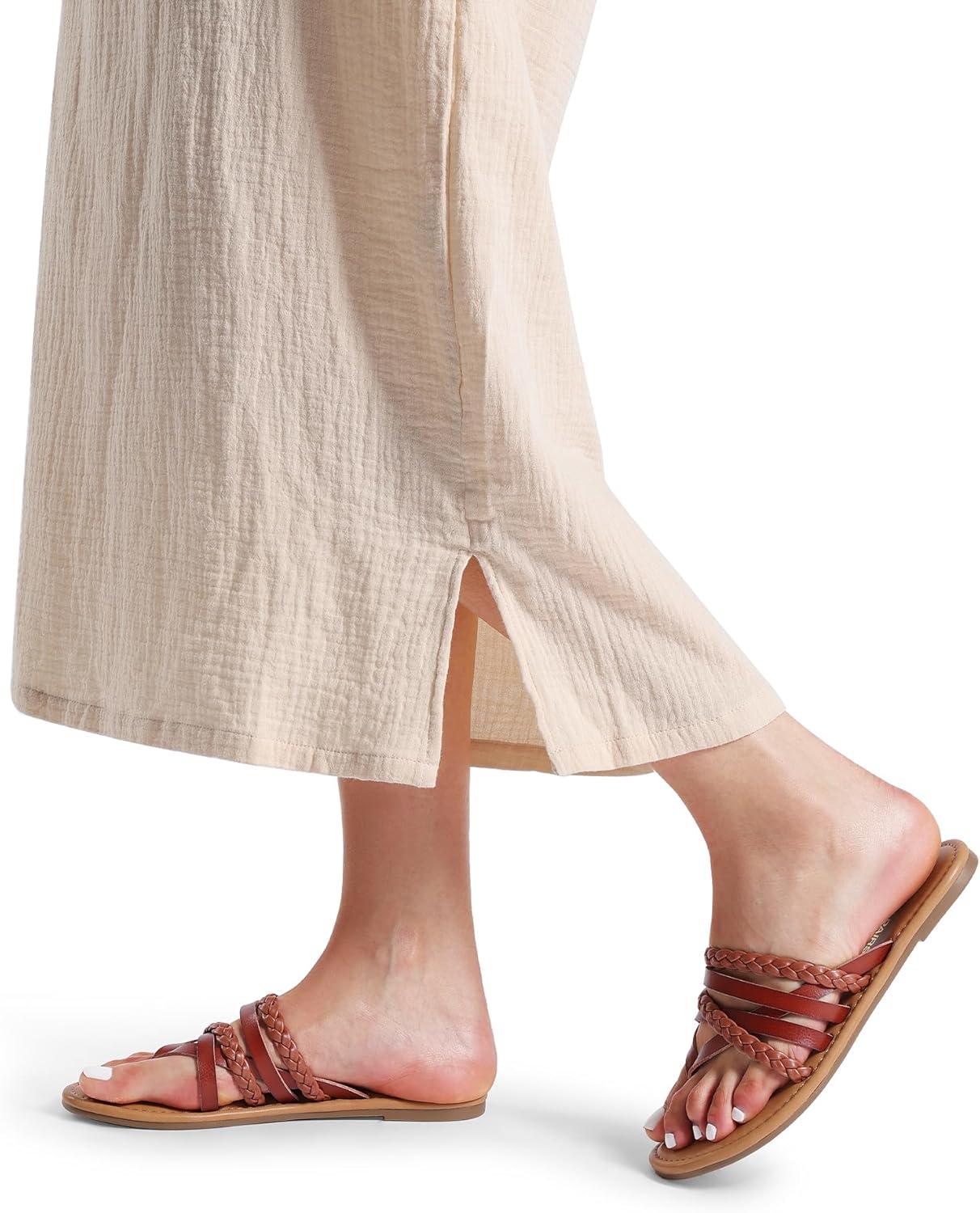 DREAM PAIRS Women’s Flip Flops Round Toe Multi Strap lightweight Summer Beach Flat Casual Thong Sandals(Brown)