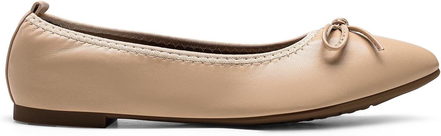 DREAM PAIRS Women’s Foldable Flats Shoes Pointed Toe Ballet Flats Bowknot Comfort Slip on Dress Shoes(Nude)