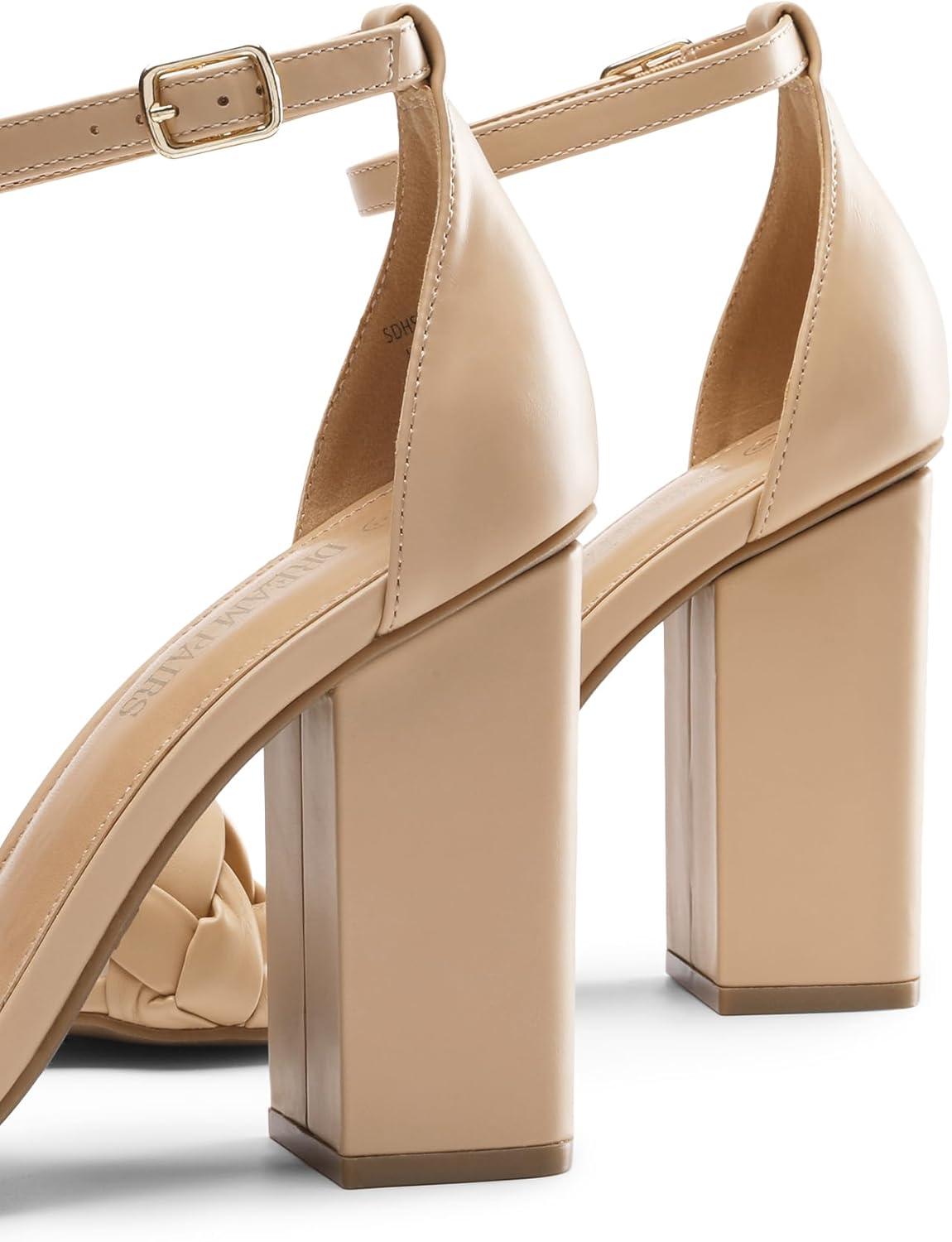 DREAM PAIRS Women’s Heels for Women Braided Open Toe Ankle Strap High Block Chunky Heel Sandals Party Wedding Dress Pumps Shoes(Nude)