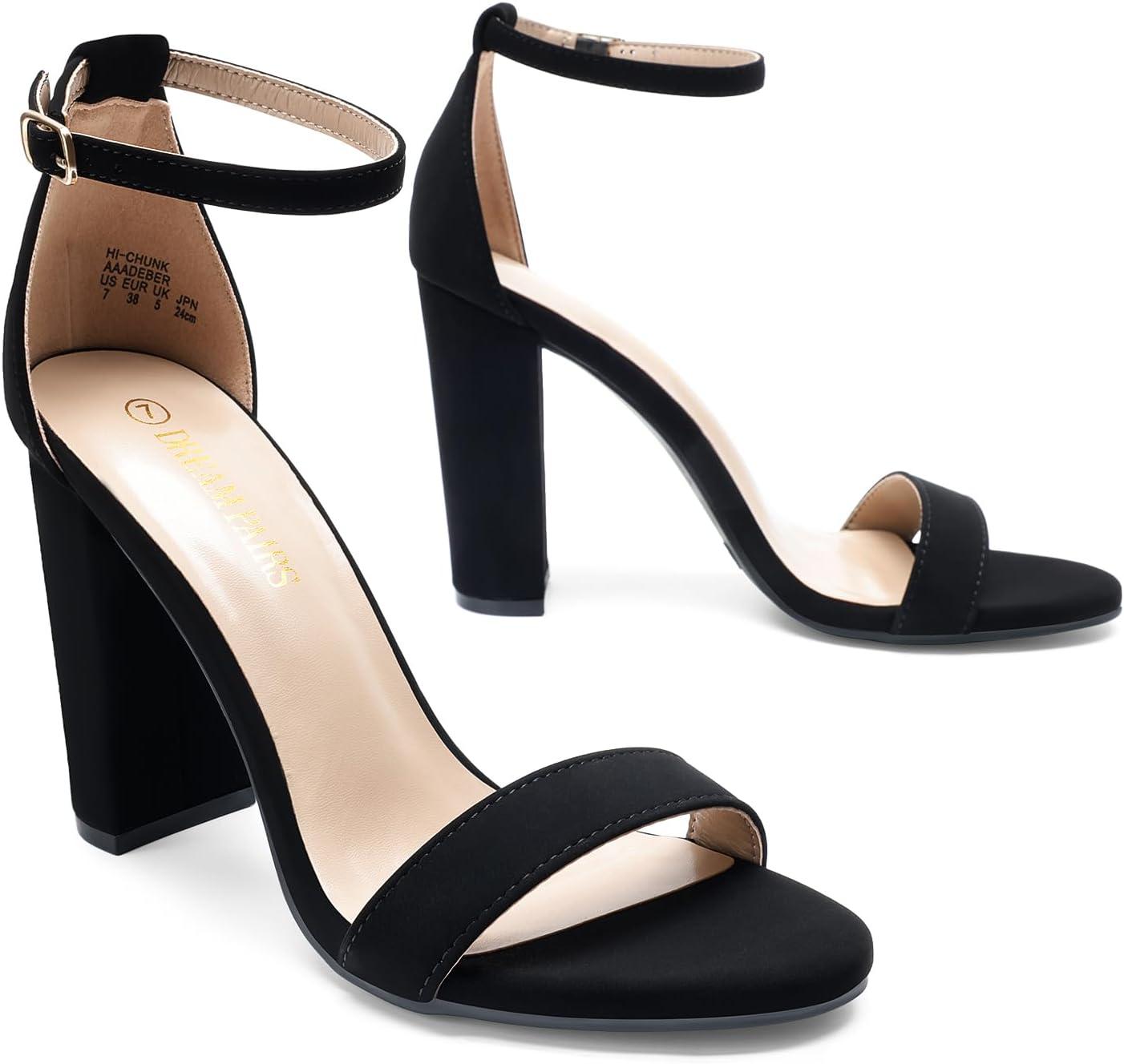 DREAM PAIRS Women’s Hi-Chunk High Heel Pump Sandals(Black/Nubuck)