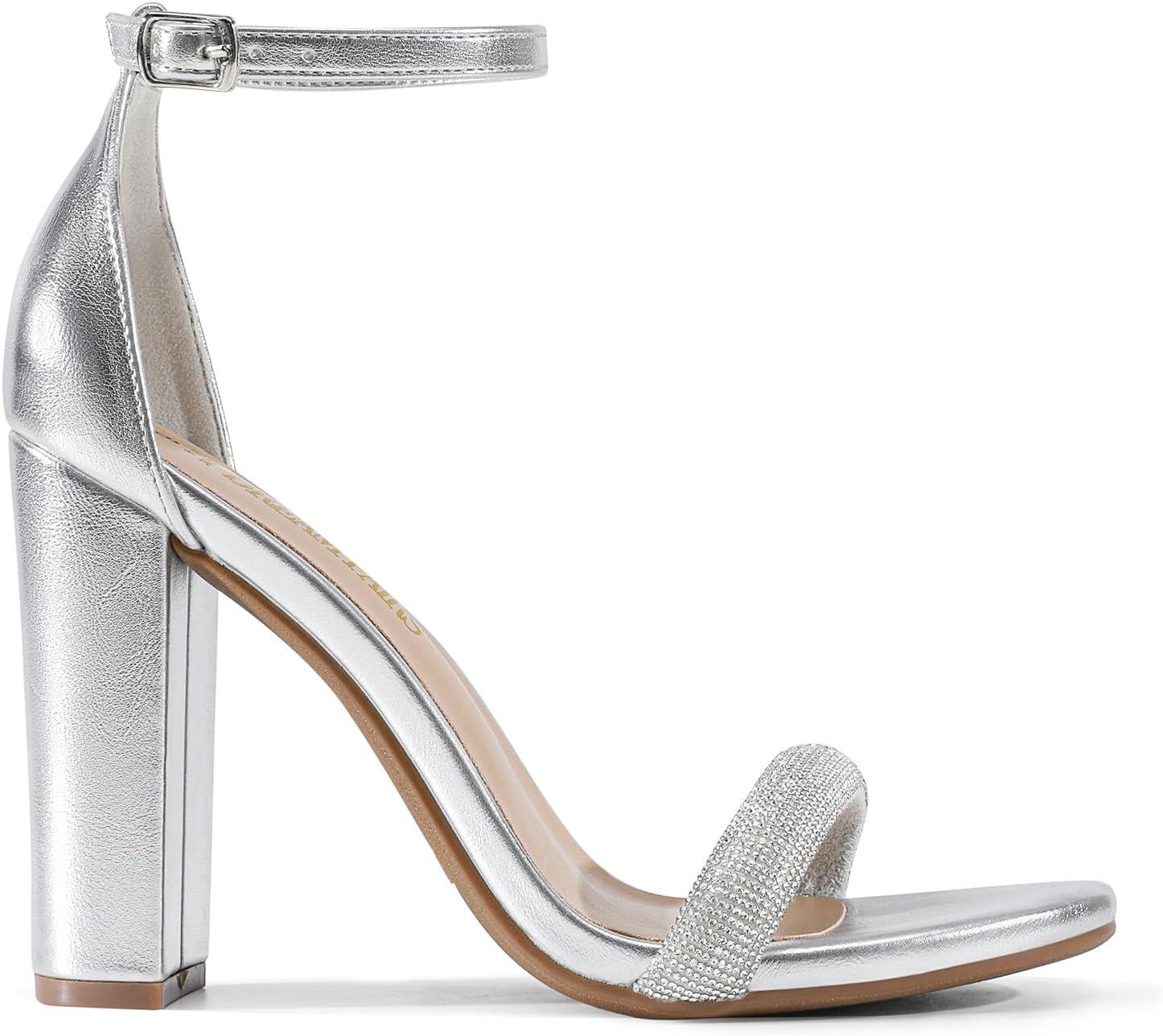DREAM PAIRS Women’s Hi-Chunk High Heel Pump Sandals(Silver)