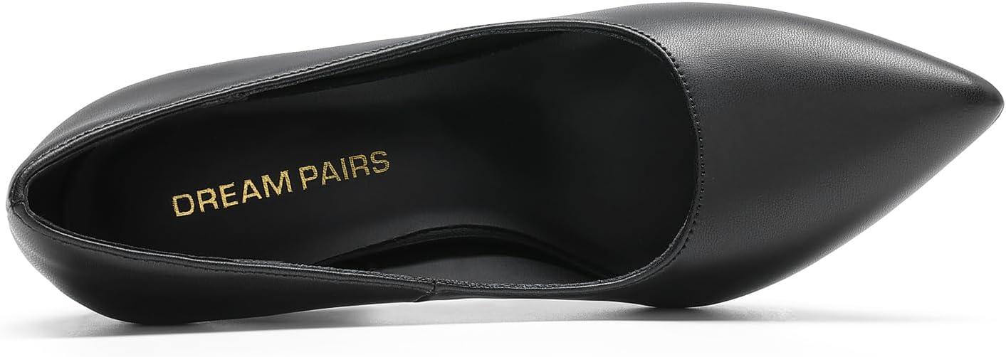 DREAM PAIRS Women’s High Chunky Block Heels Closed Pointed Toe Slip on Women Pumps Wedding Party Work Comfortable Dress Shoes for Women(Black-pu)