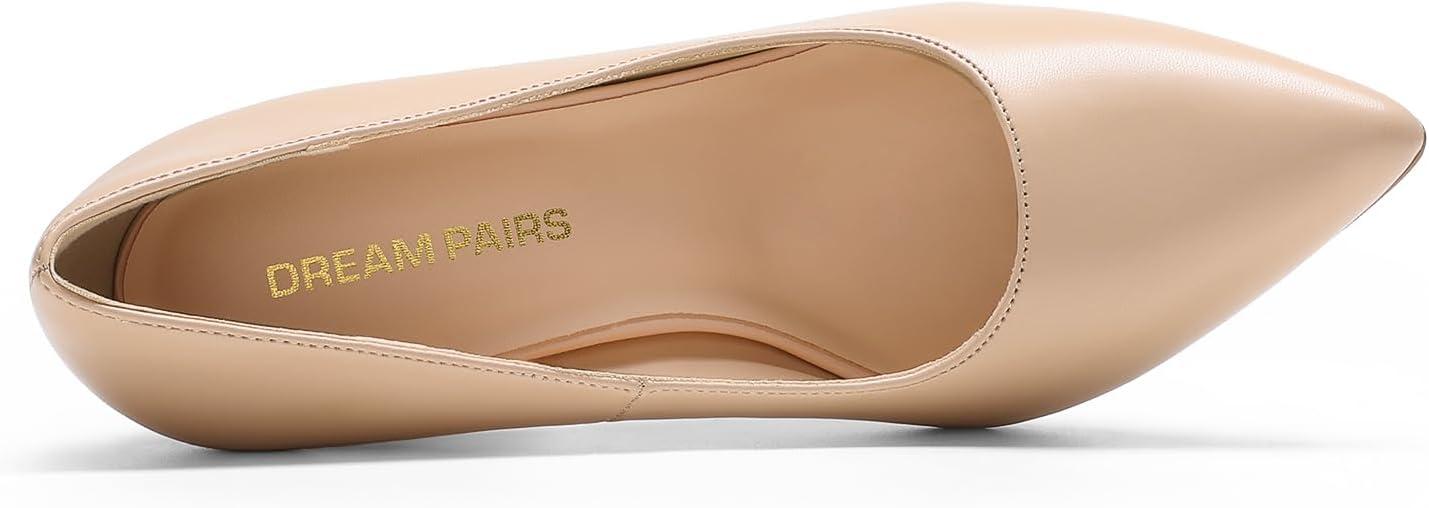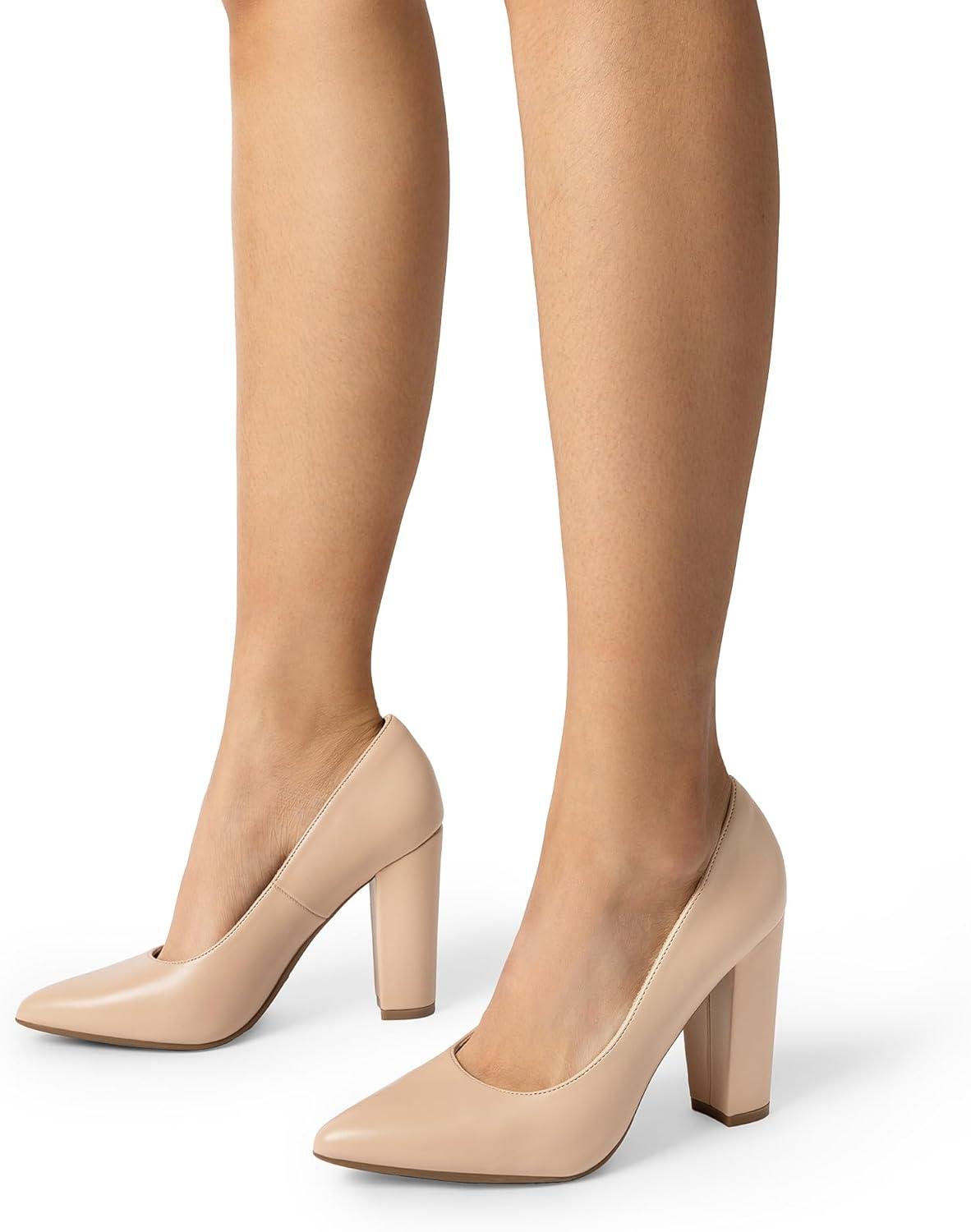 DREAM PAIRS Women’s High Chunky Block Heels Closed Pointed Toe Slip on Women Pumps Wedding Party Work Comfortable Dress Shoes for Women(Nude)