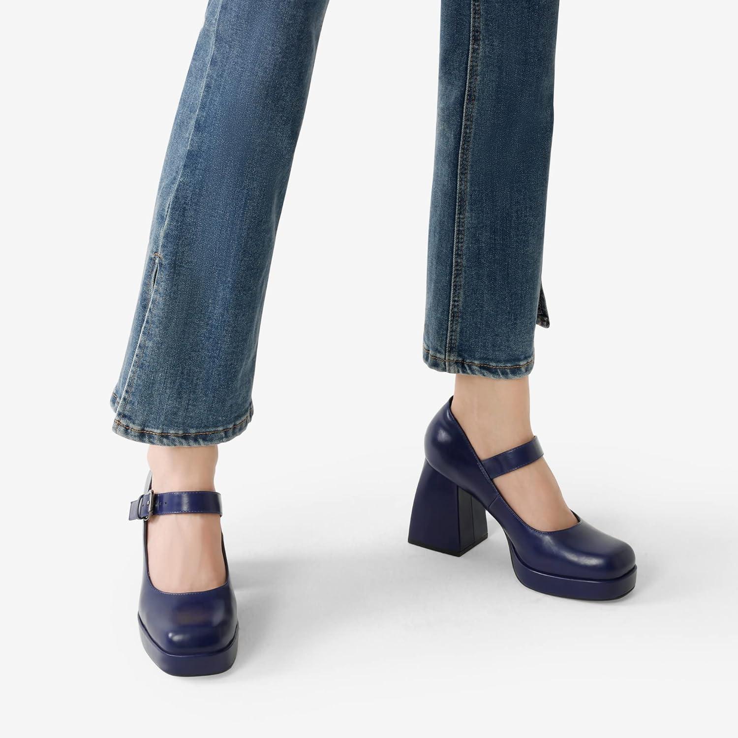 DREAM PAIRS Women’s High Chunky Platform Closed Toe Mary Jane Block Heels Square Toe Strappy Dress Wedding Party Pumps Shoes(Navy-pu)