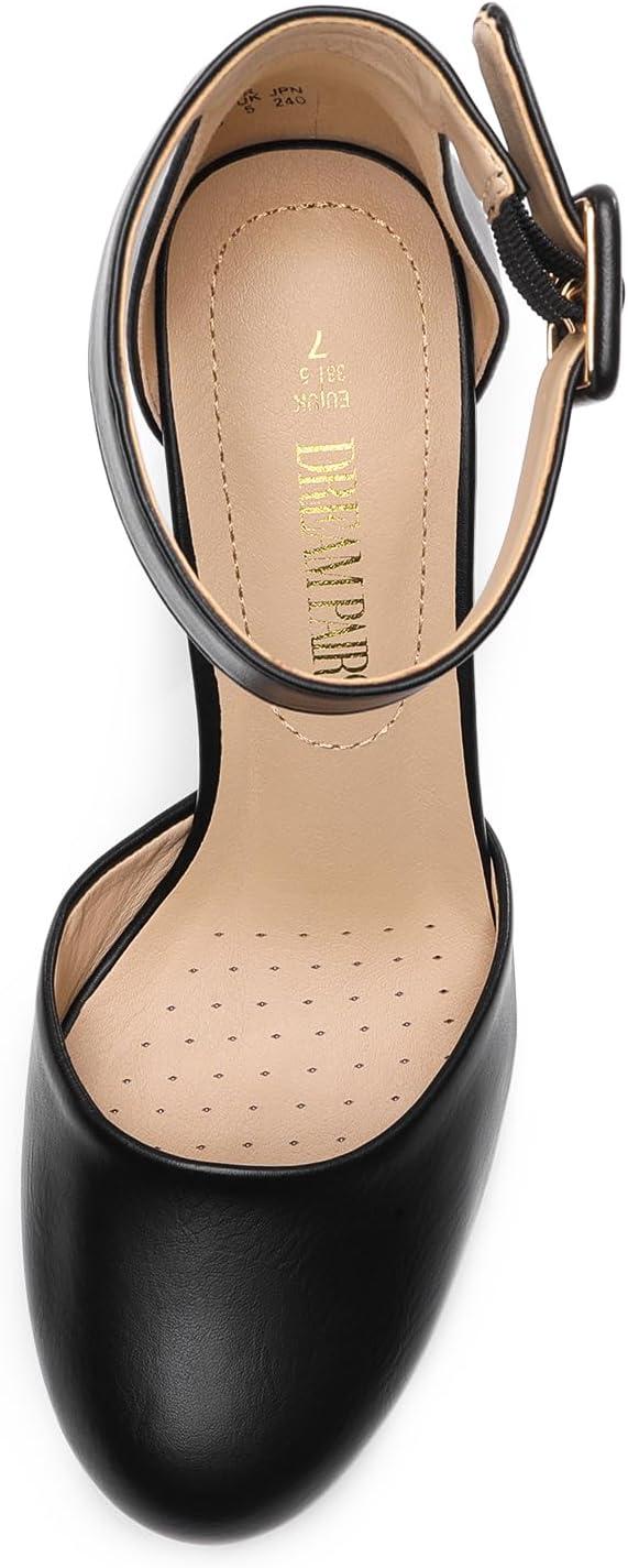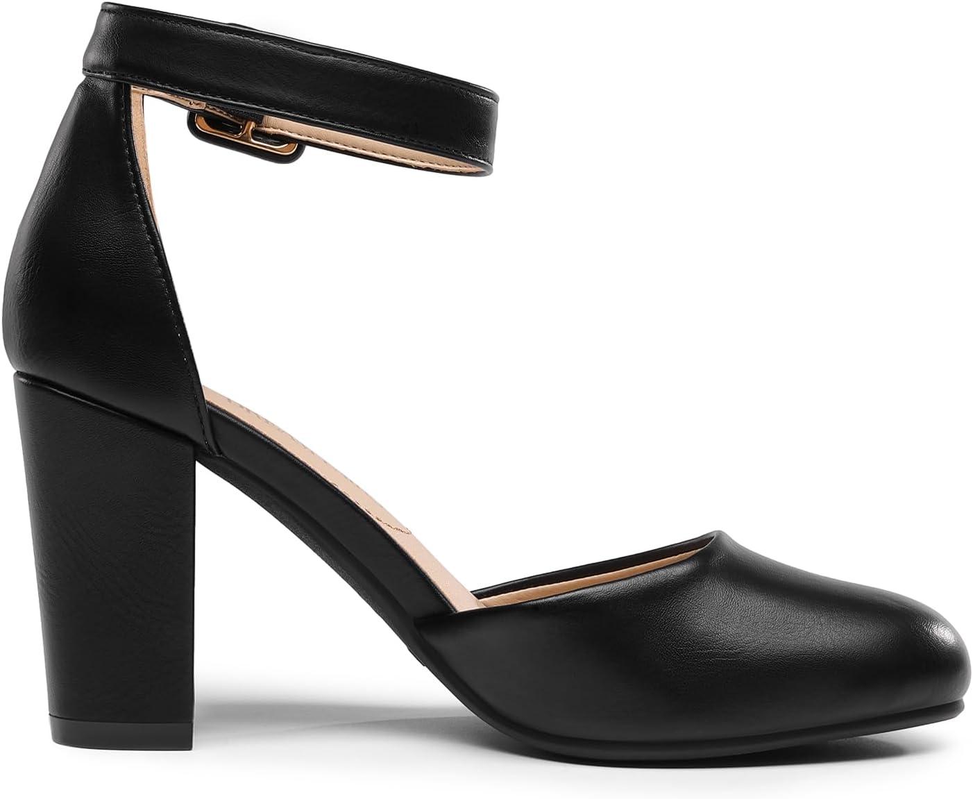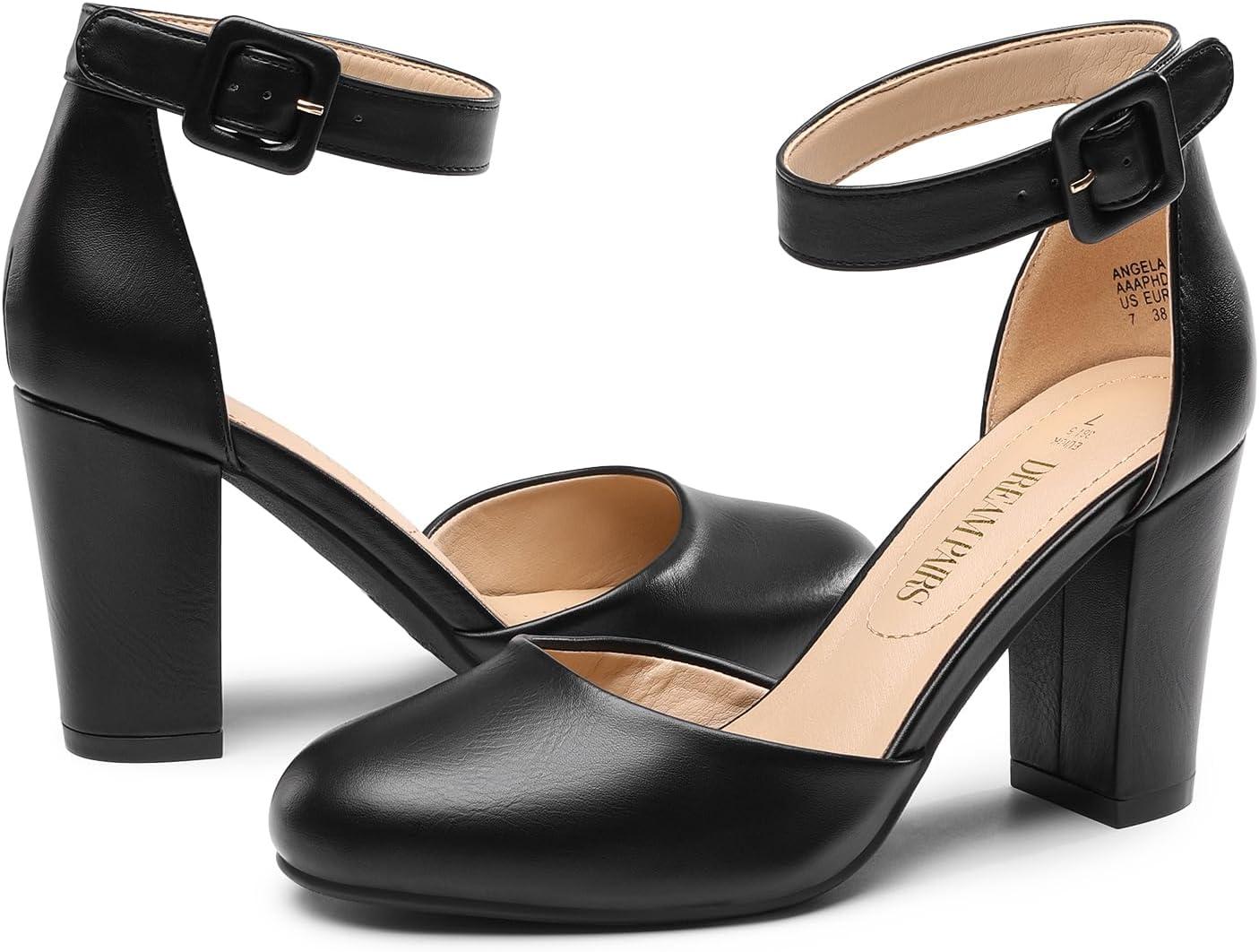 DREAM PAIRS Women’s High Heel Ankle Strap Closed Toe Chunky Wedding Pumps Shoes(Black-pu)