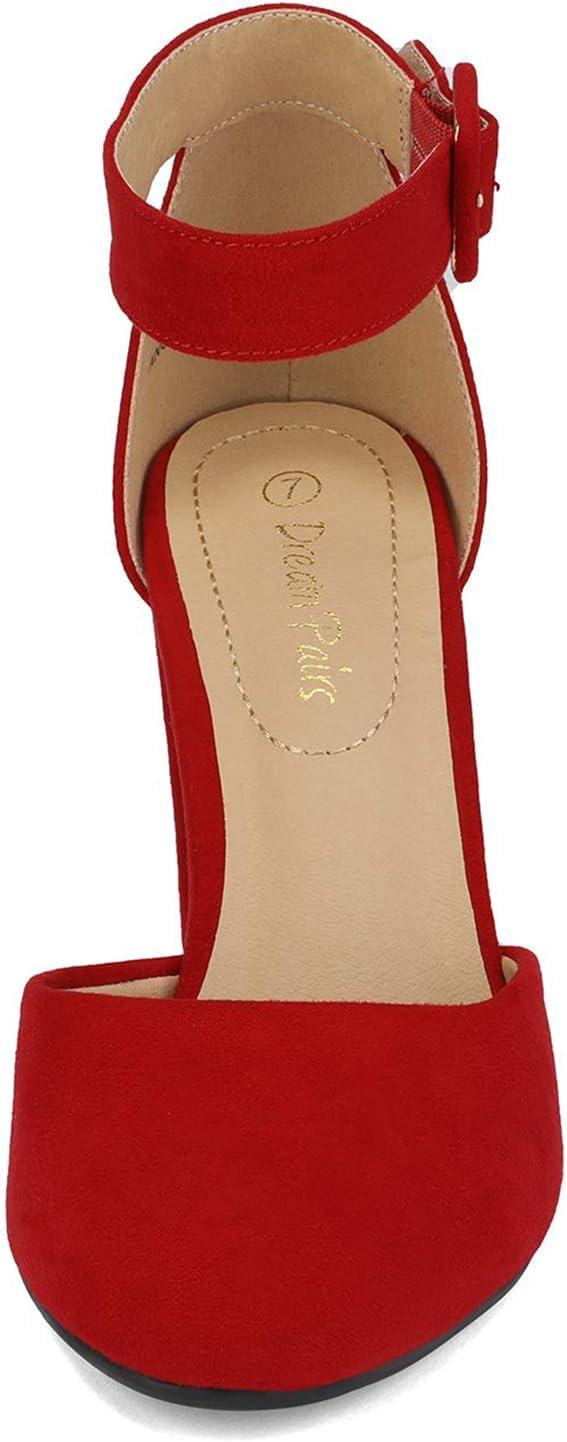 DREAM PAIRS Women’s High Heel Ankle Strap Closed Toe Chunky Wedding Pumps Shoes(Red/Suede)