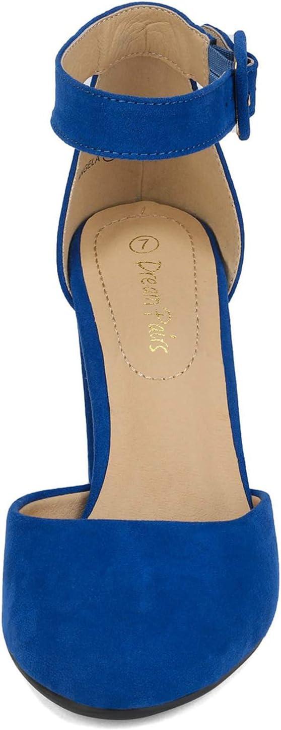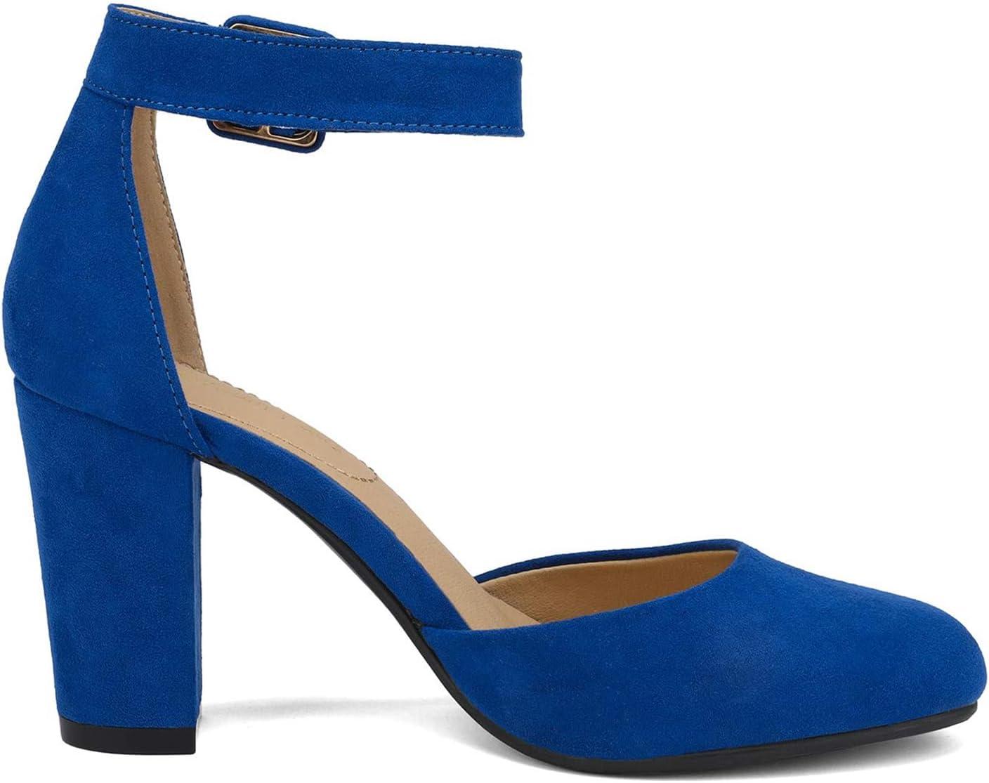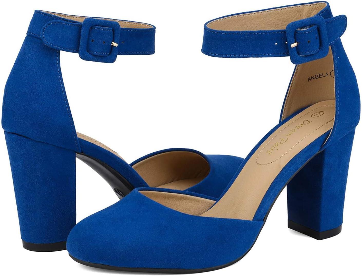 DREAM PAIRS Women’s High Heel Ankle Strap Closed Toe Chunky Wedding Pumps Shoes(Royal/Blue/Suede)