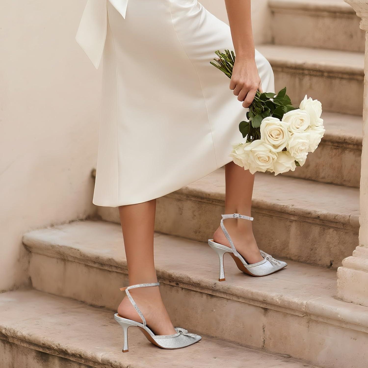 DREAM PAIRS Women’s High Heels Destiny Closed Toe Strappy Heels Sexy Rhinestone Ankle Strap Pumps Wedding Bridal Party Dress Shoes Destiny(Silver)