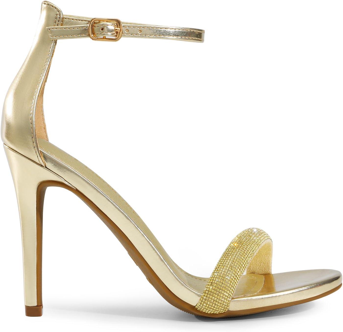DREAM PAIRS Women’s High Heels Flower Ankle Strap Stilettos Round Open Toe Dressy Sexy Sandals(Gold-rhinestone)