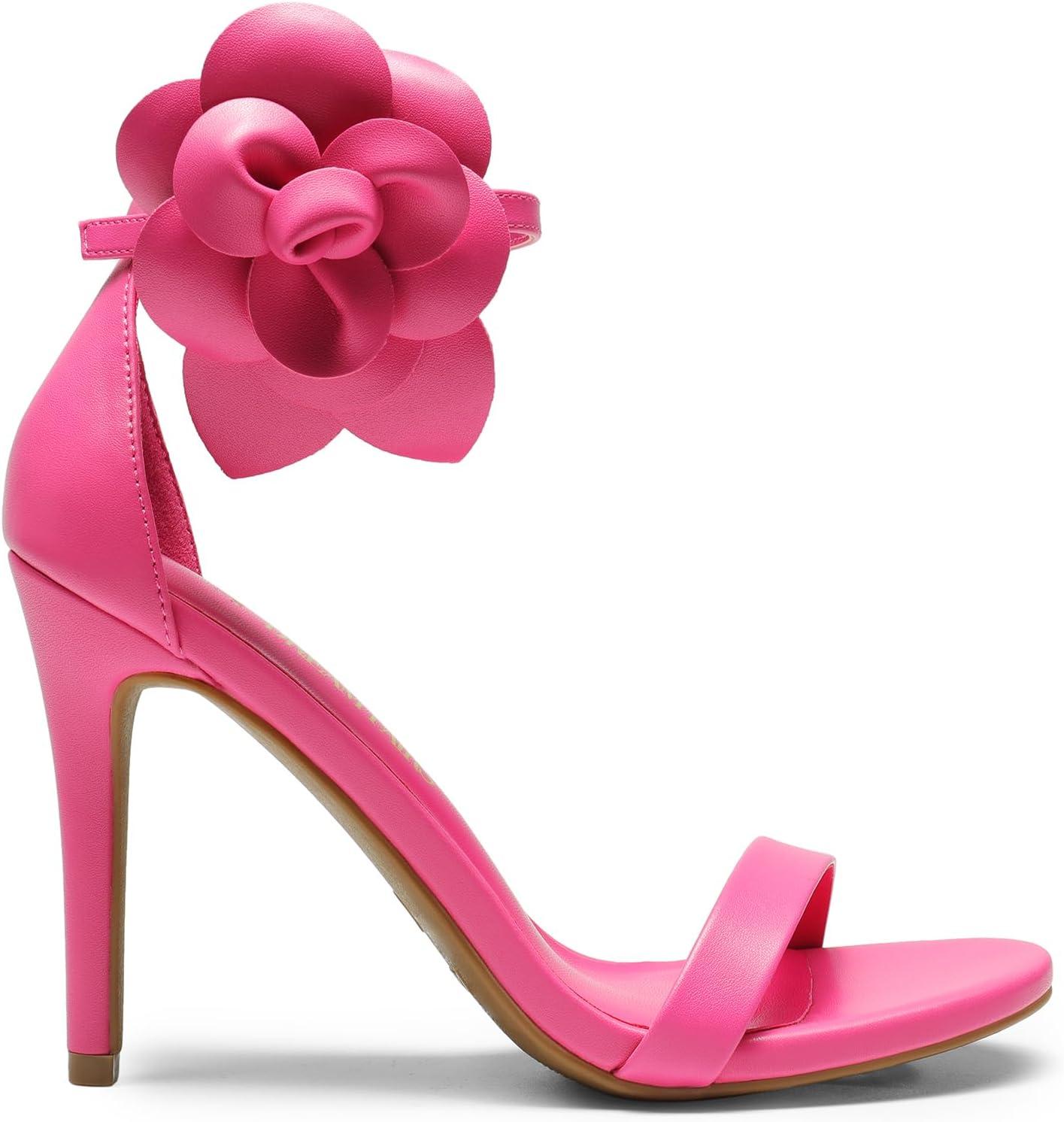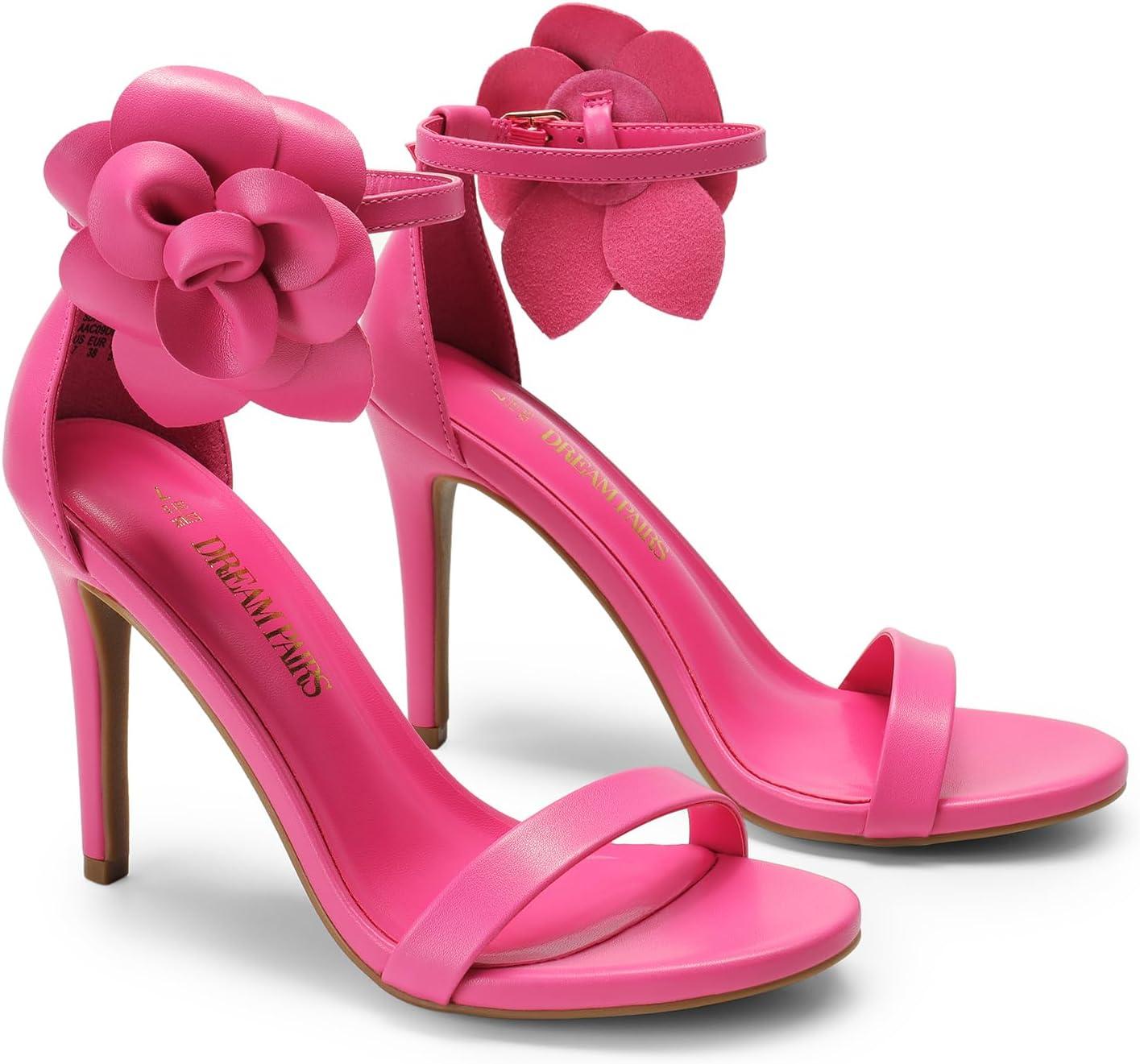 DREAM PAIRS Women’s High Heels Flower Ankle Strap Stilettos Round Open Toe Dressy Sexy Sandals(Hot Pink-pu)