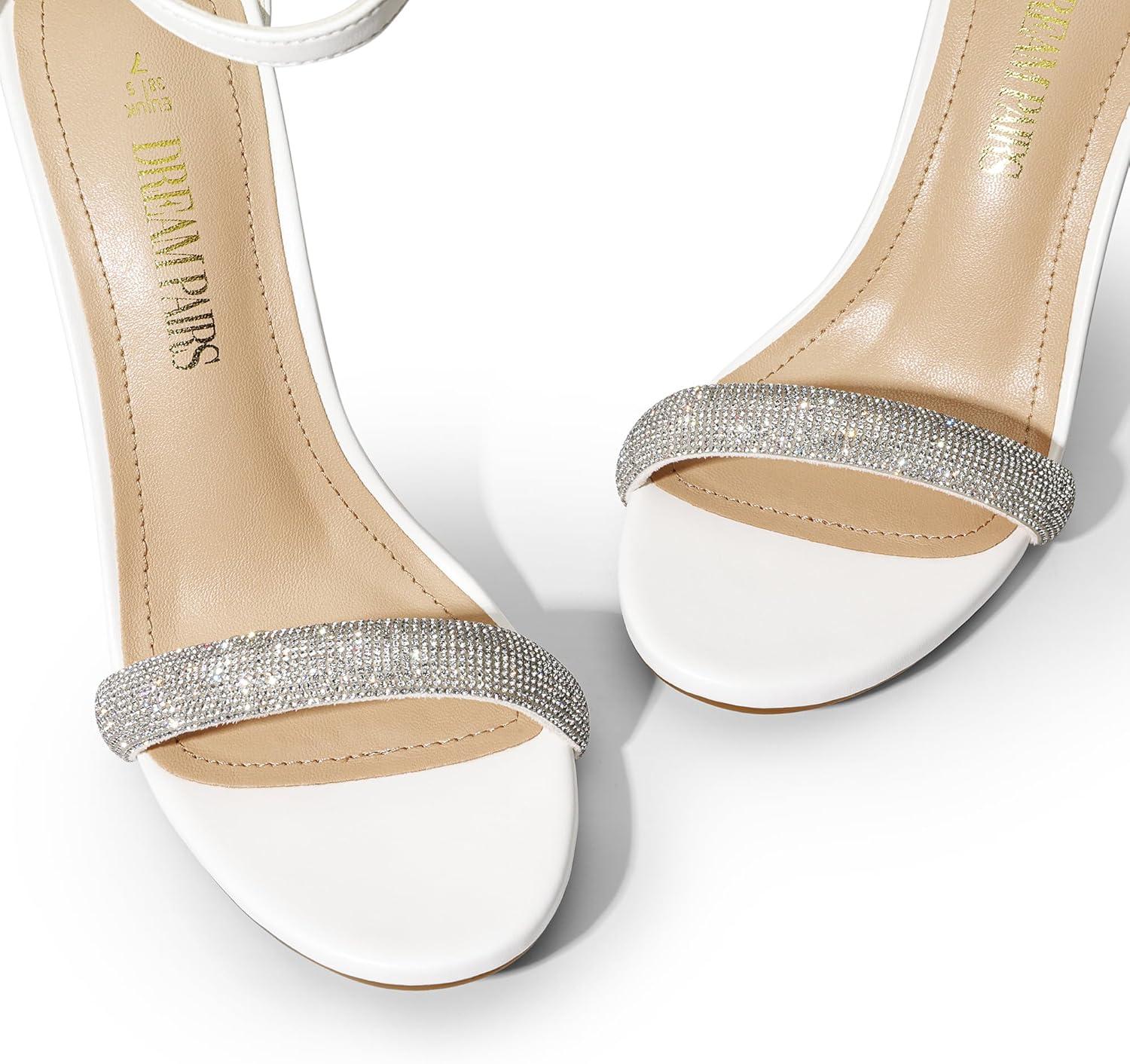 DREAM PAIRS Women’s High Heels Flower Ankle Strap Stilettos Round Open Toe Dressy Sexy Sandals(White-rhinestone)