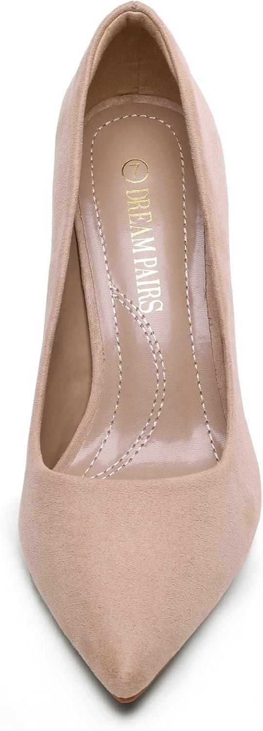 DREAM PAIRS Women’s High Stiletto Heels Closed Pointed Toe Dress Pumps Shoes for Wedding Work Office Business, 3 Inches(Nude/Suede)
