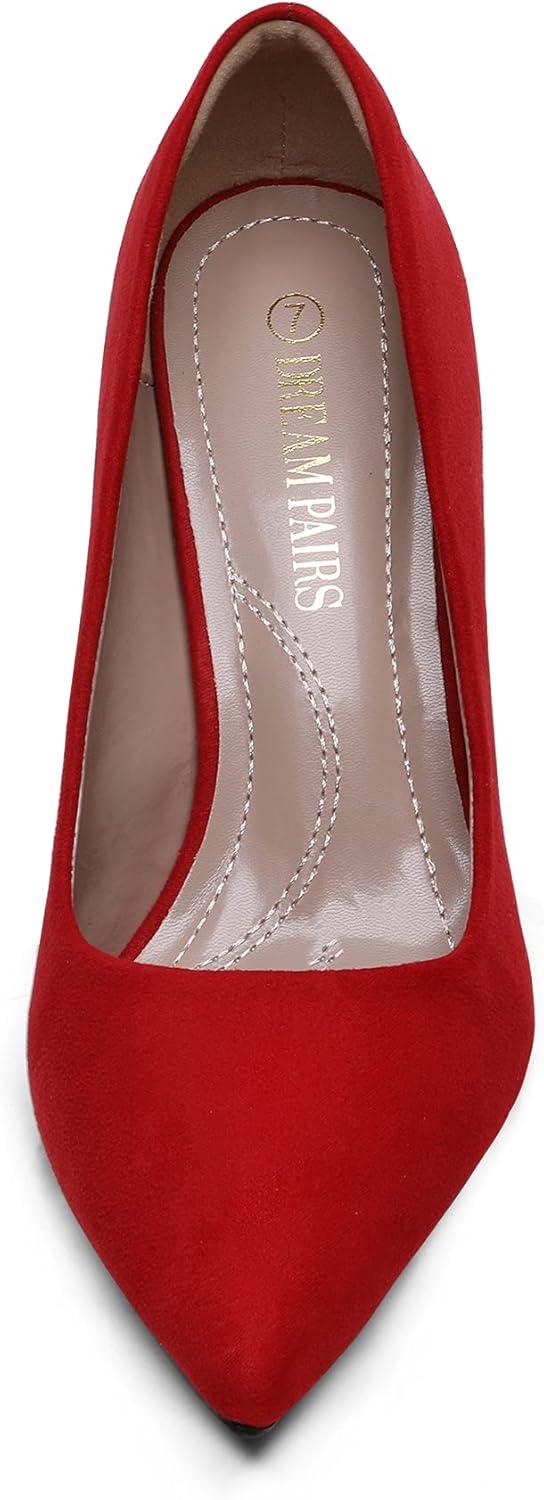 DREAM PAIRS Women’s High Stiletto Heels Closed Pointed Toe Dress Pumps Shoes for Wedding Work Office Business, 3 Inches(Red/Suede)