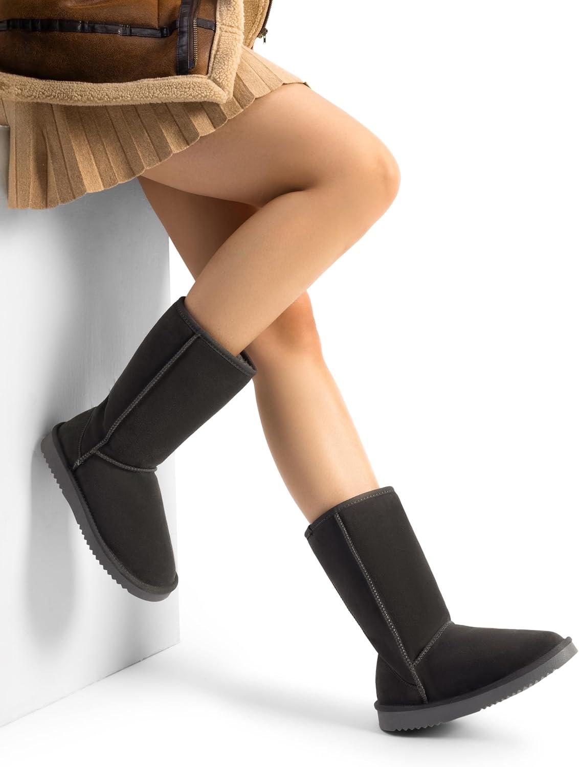 DREAM PAIRS Women’s High-top Winter Snow Boots Faux Fur Lining Pull on Warm Comfortable Outdoor Booties Shoes for Women FuzzyClassic(Grey)