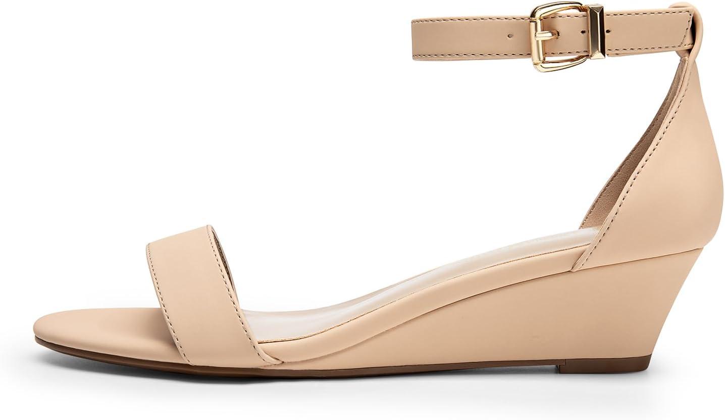 DREAM PAIRS Women’s Ingrid Ankle Strap Low Wedge Sandal(Nude)