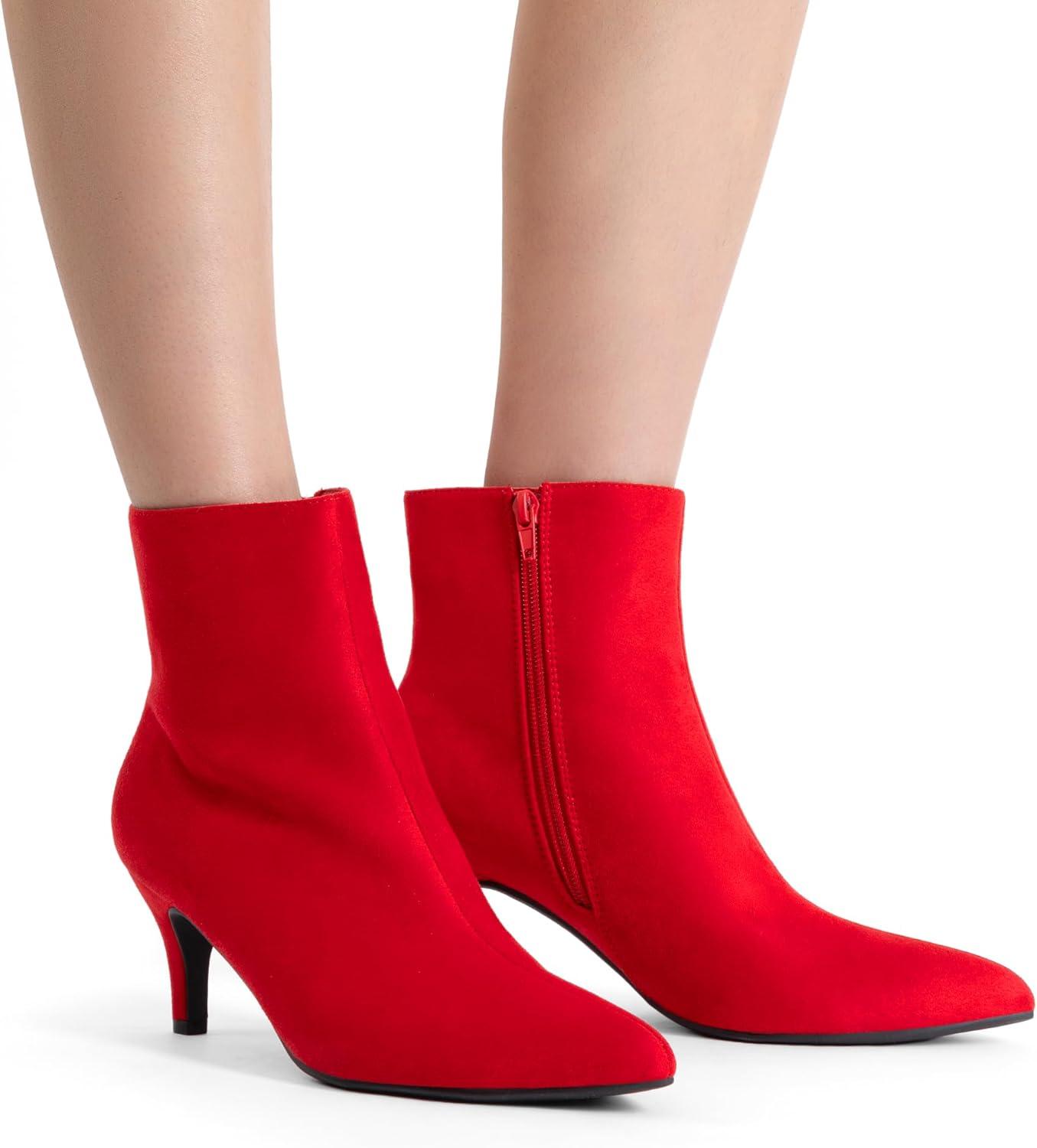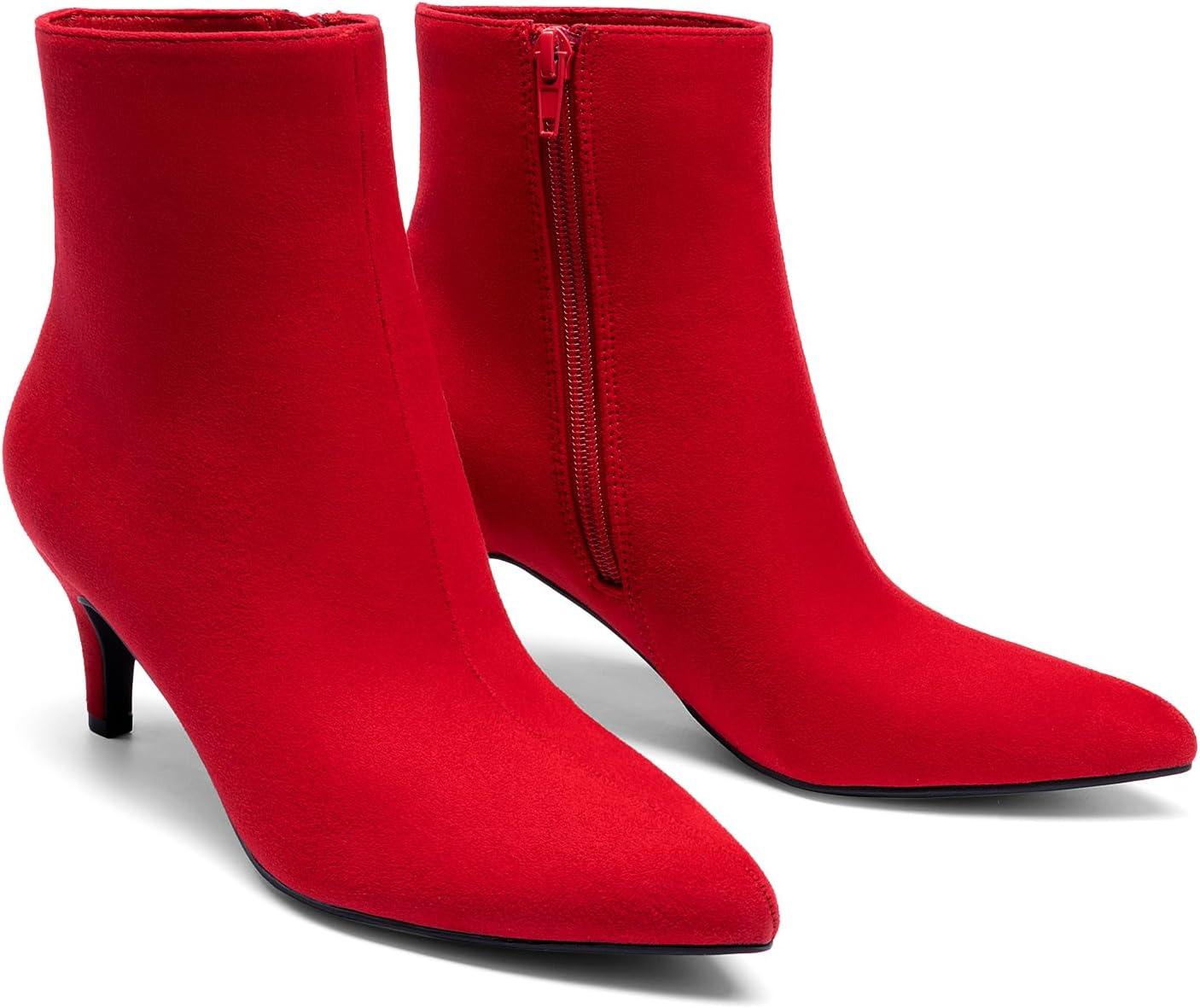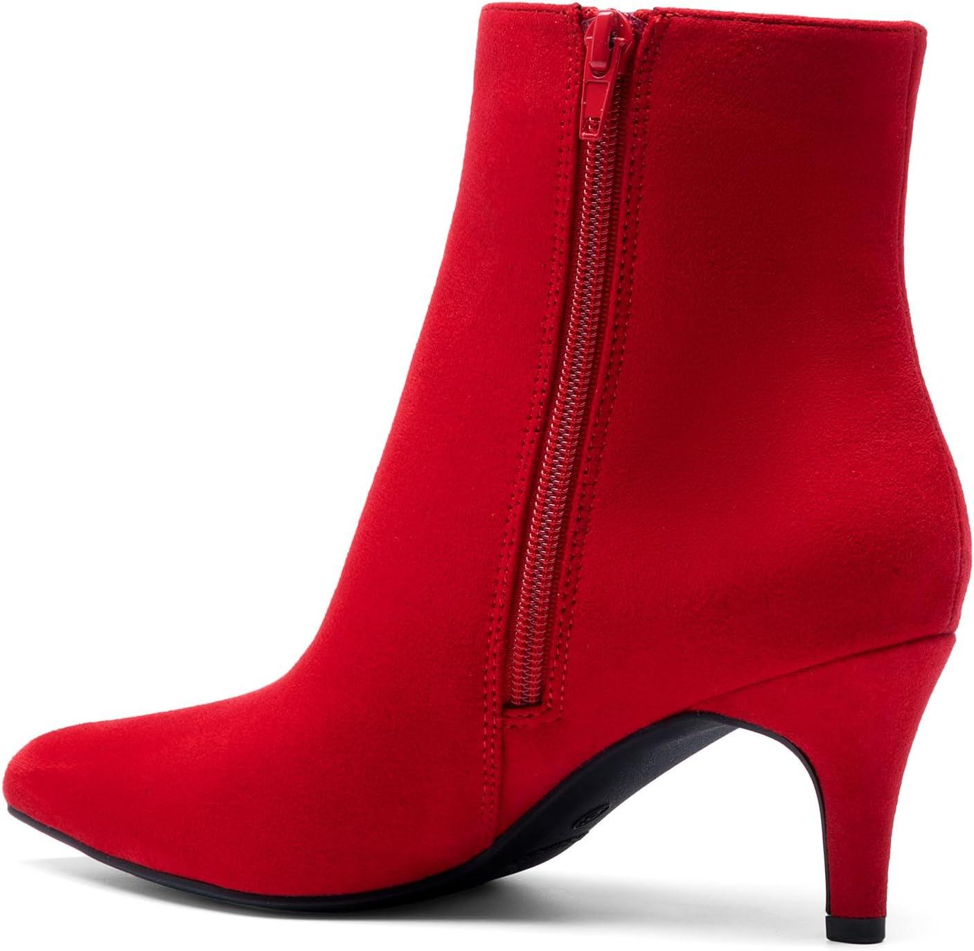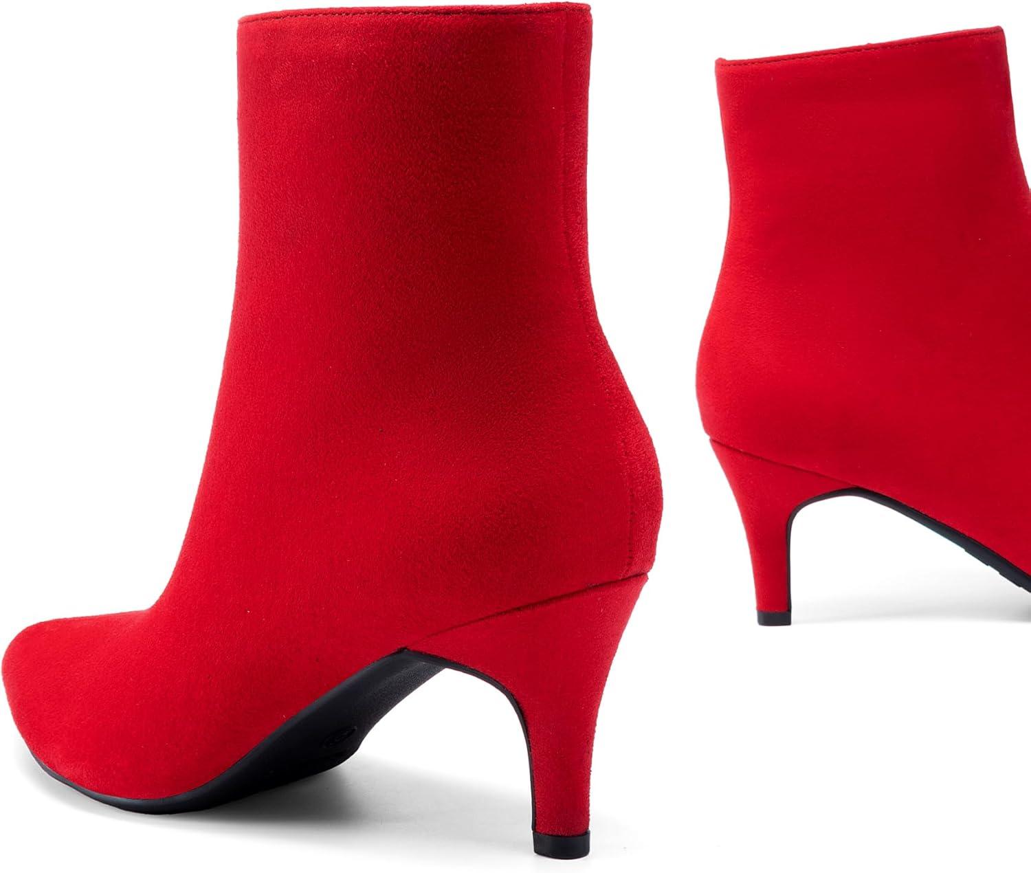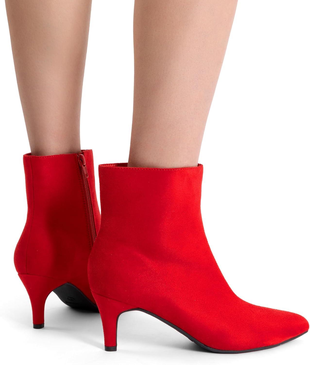 DREAM PAIRS Women’s Kitten Heel Ankle Boots Pointed Toe Side Zipper Fall Leather Ankle Booties for Office Work(Red)