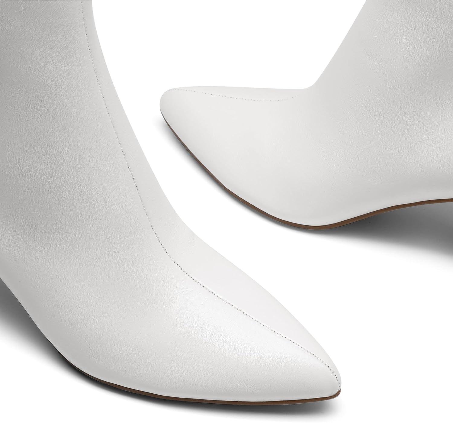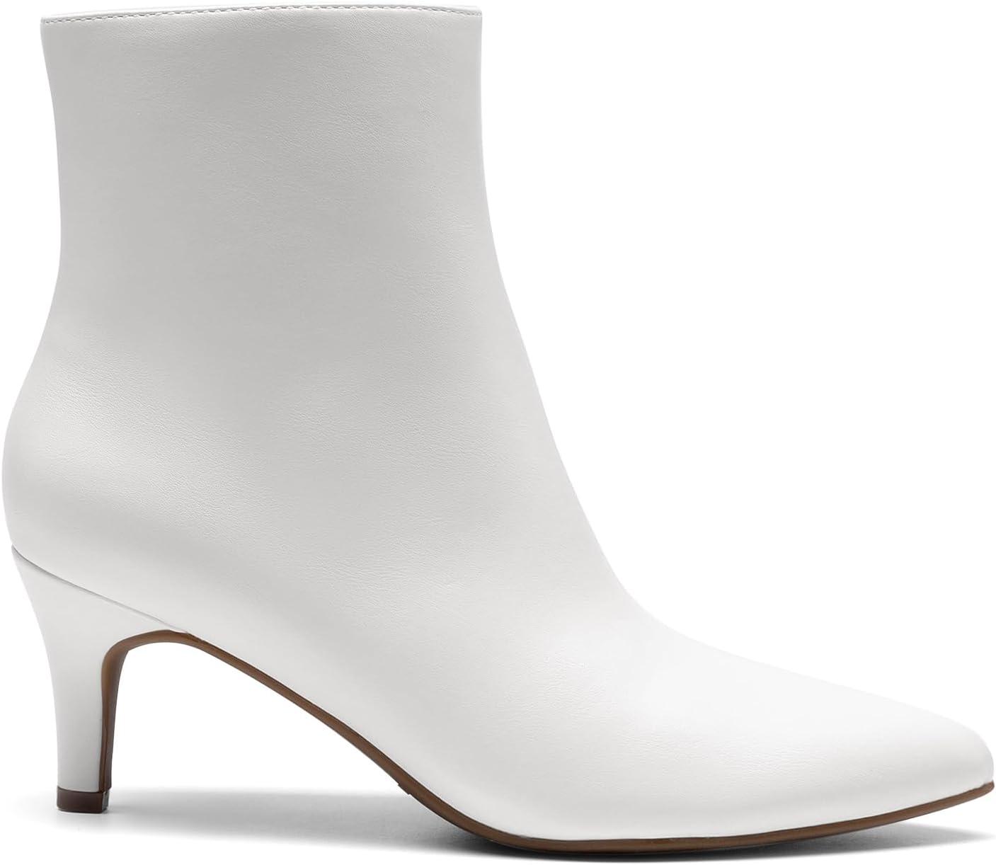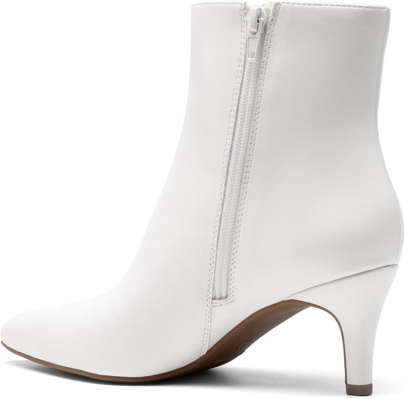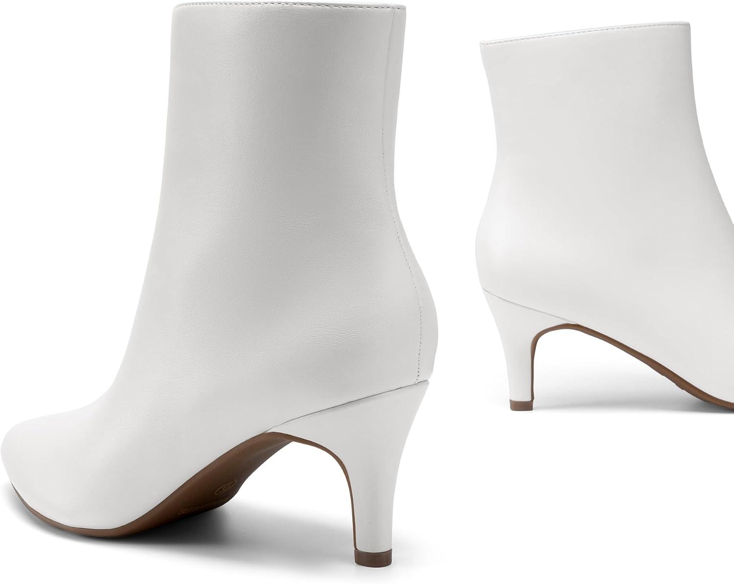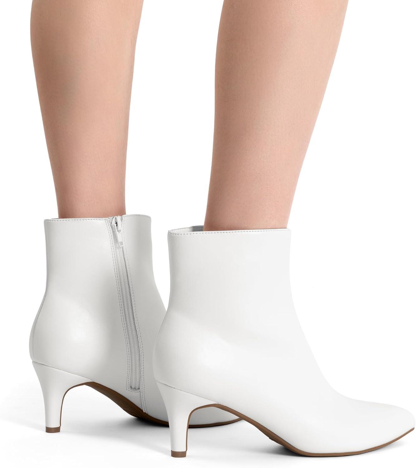 DREAM PAIRS Women’s Kitten Heel Ankle Boots Pointed Toe Side Zipper Fall Leather Ankle Booties for Office Work(White)