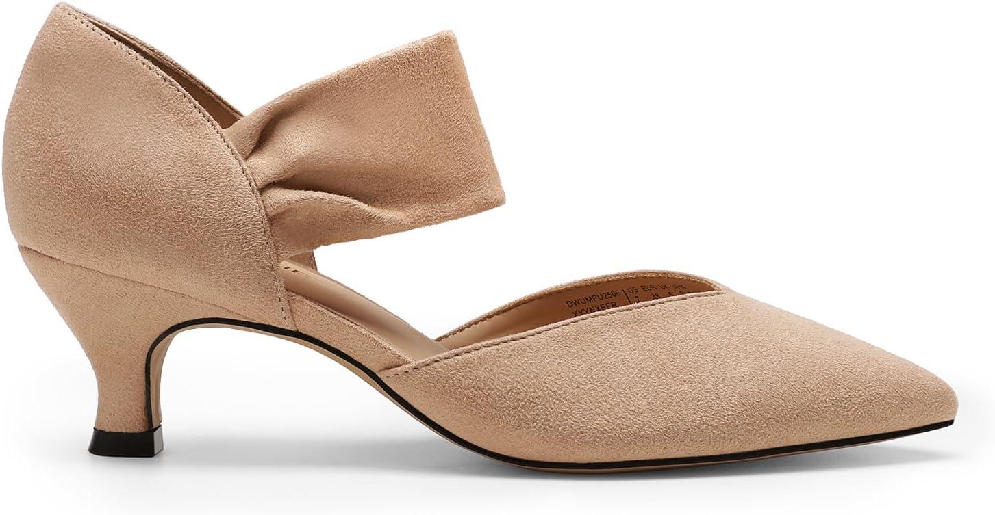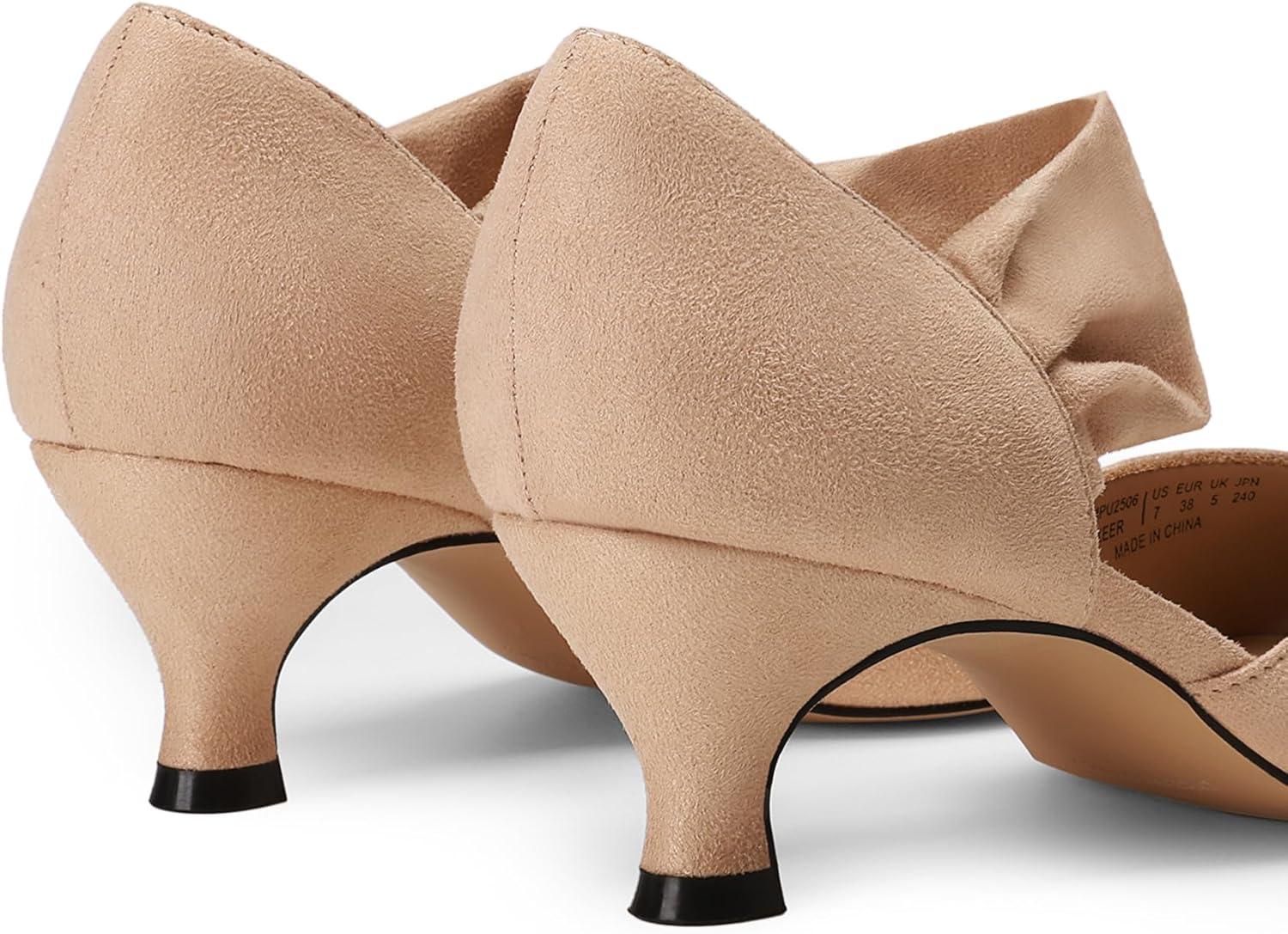 DREAM PAIRS Women’s Kitten Heels Low Pumps Shoes Pointed Closed Toe Slip on Dress Work Bridal Party Wedding(Nude)