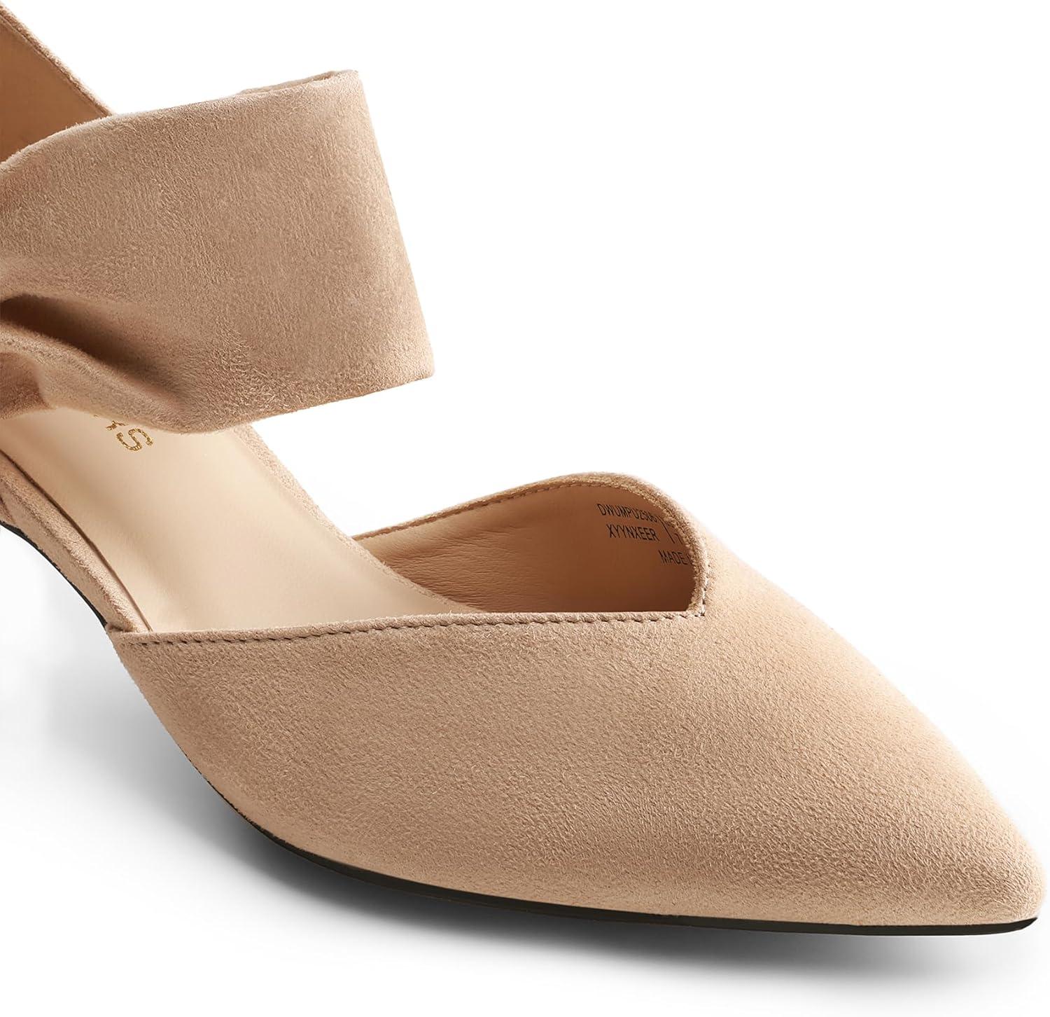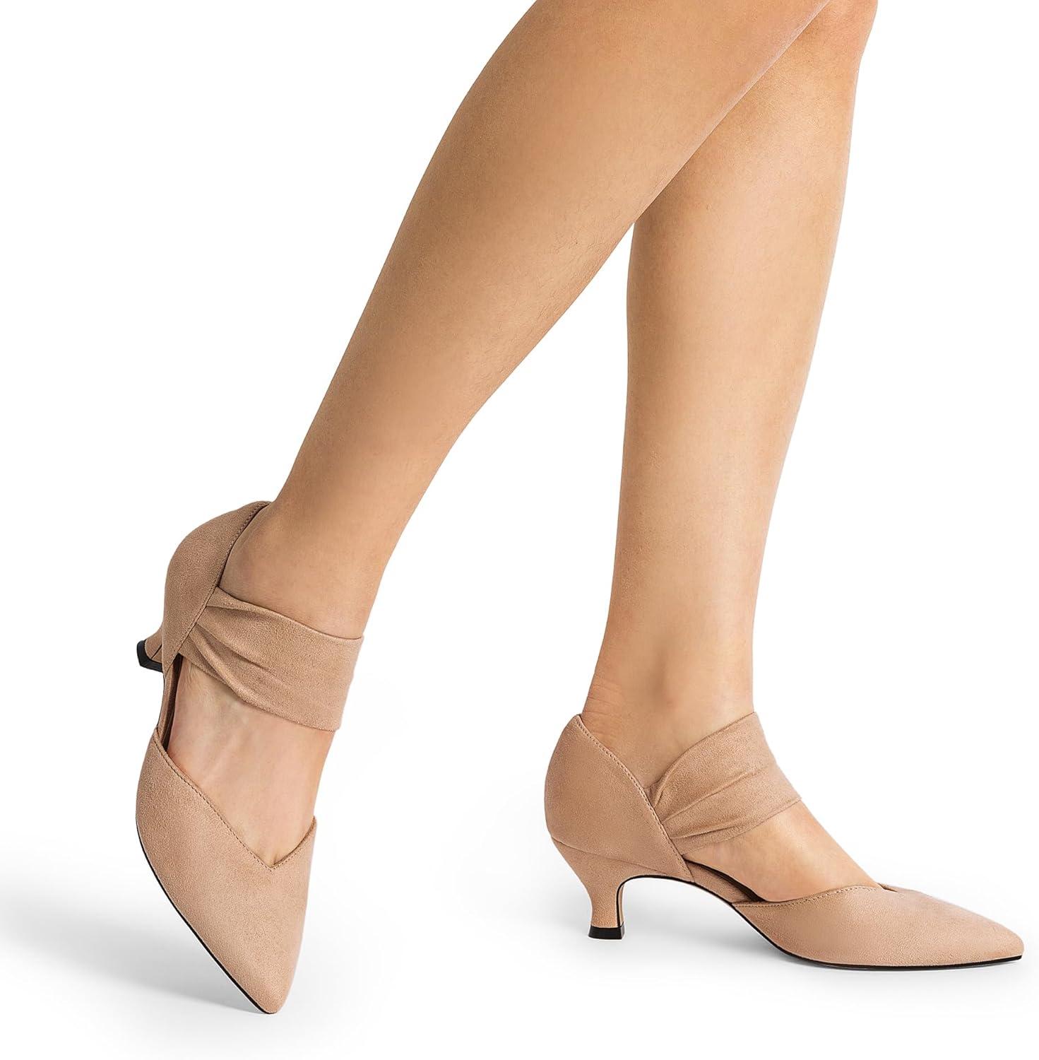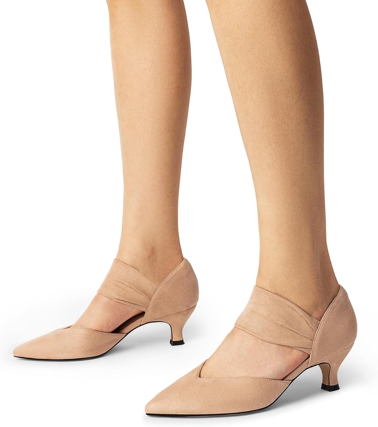 Elevate your look with these women's kitten heel pumps for a touch of elegance. With a classy upper and wide, elastic ankle strap, these cute low heel pumps effortlessly adapt to various styles. The soft lining prevents chafing and discomfort, while the stable heel and anti-slip sole offer reliable support. Choose from diverse finishes and color options to create your unique charm.