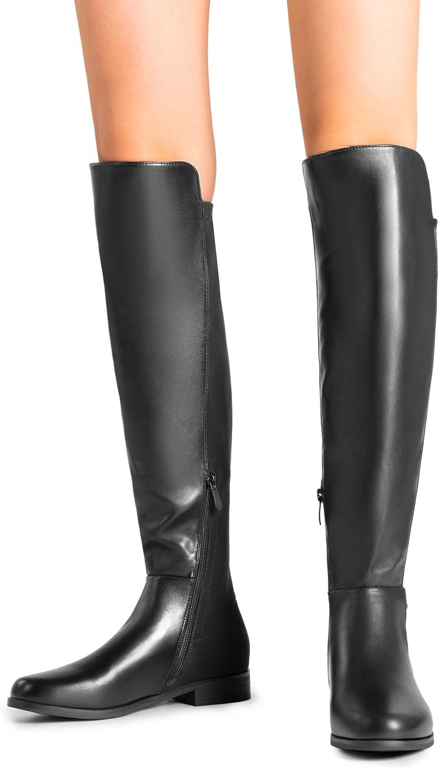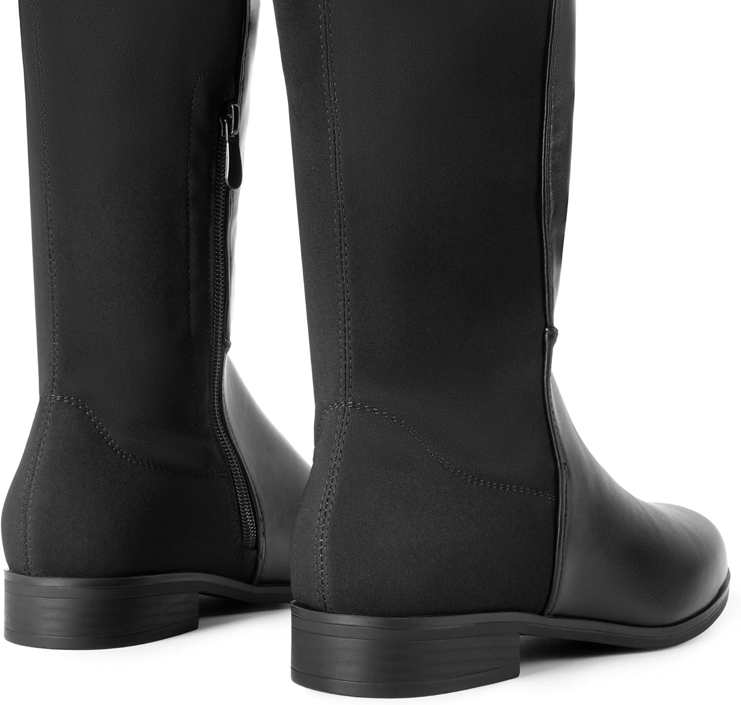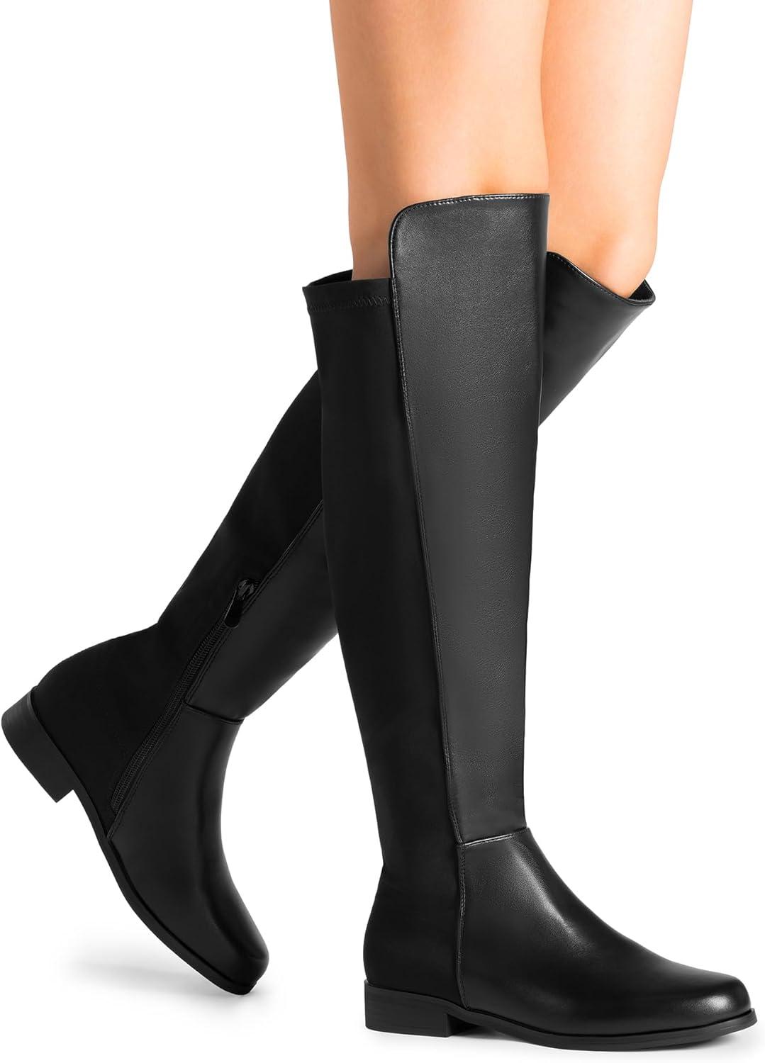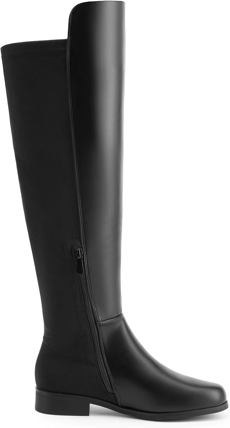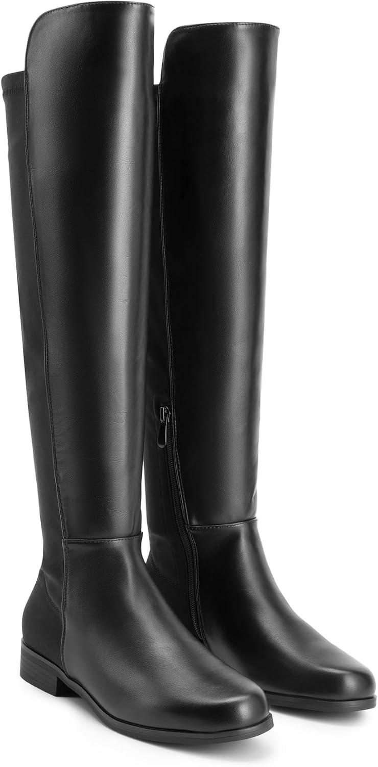 DREAM PAIRS Women’s Knee-High Boots Comfortable Flat Low Heel Round Toe Stretchy Suede Slouch Boots with Side Zipper(Black-pu)