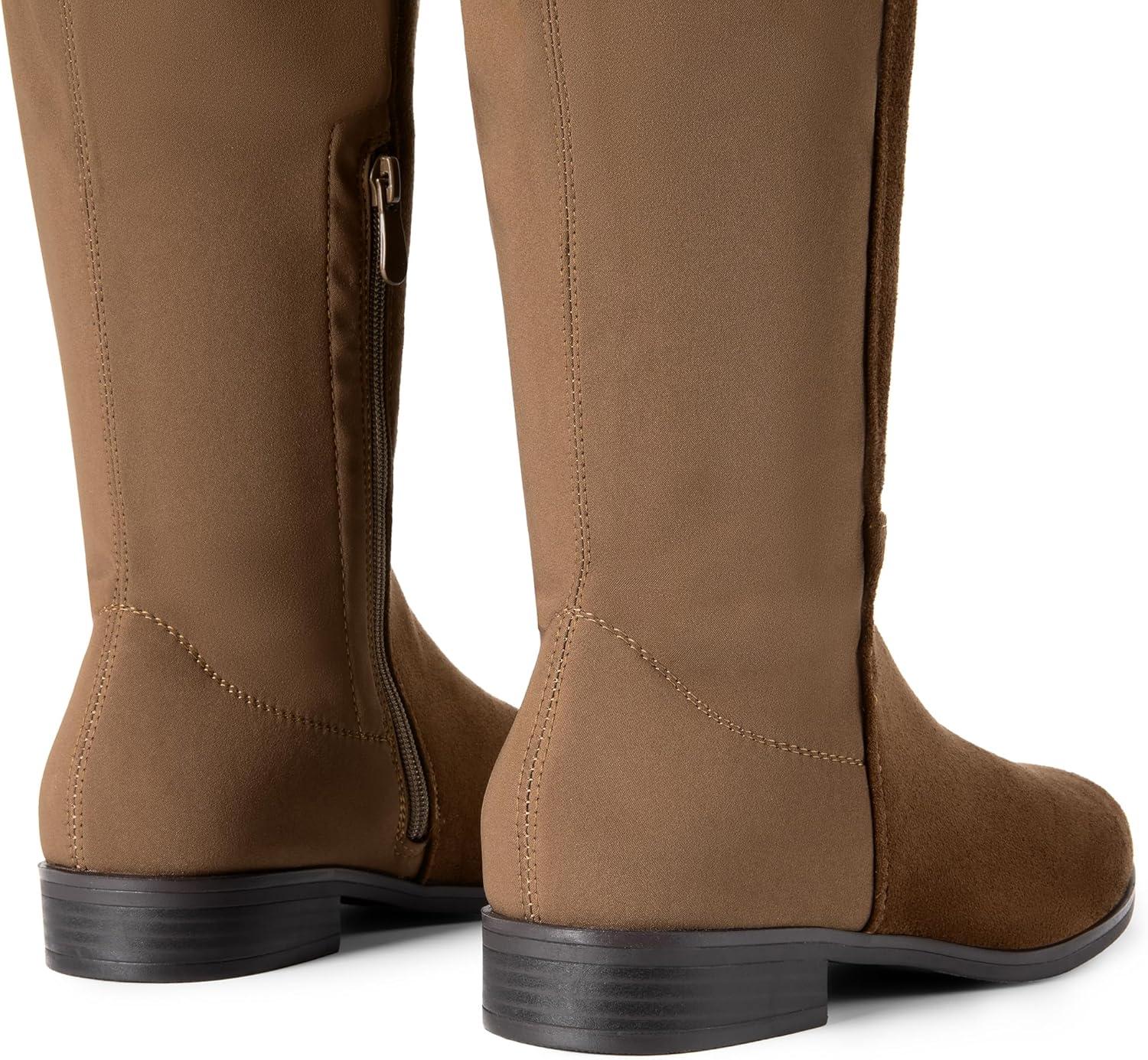 DREAM PAIRS Women’s Knee-High Boots Comfortable Flat Low Heel Round Toe Stretchy Suede Slouch Boots with Side Zipper(Brown-suede)