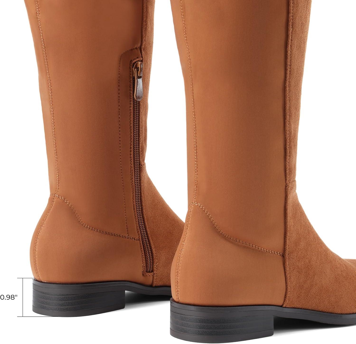 DREAM PAIRS Women’s Knee-High Boots Comfortable Flat Low Heel Round Toe Stretchy Suede Slouch Boots with Side Zipper(Camel)