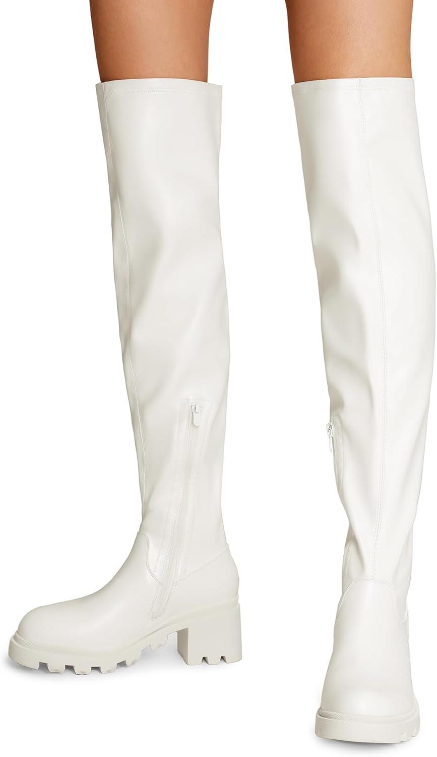 DREAM PAIRS Women’s Knee High Boots, Platform Over The Knee High Chunky Heel Fashion Boots for Women(White-pu)