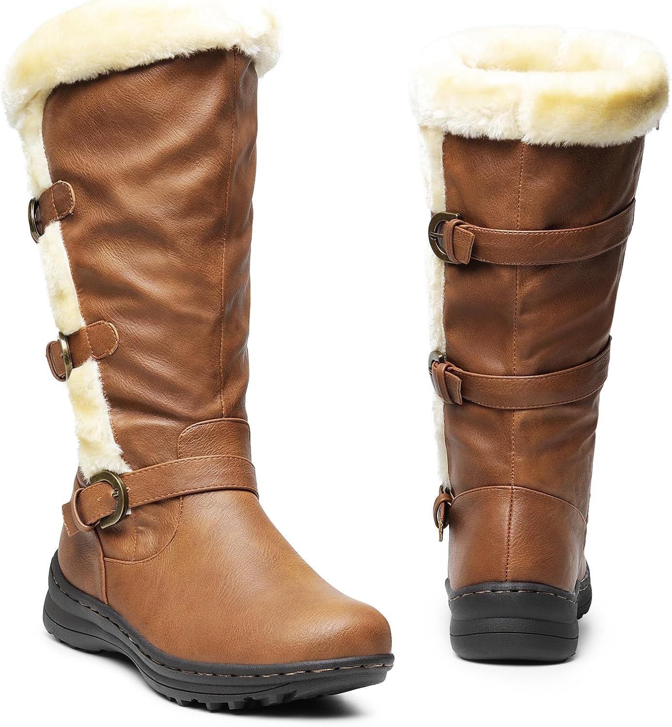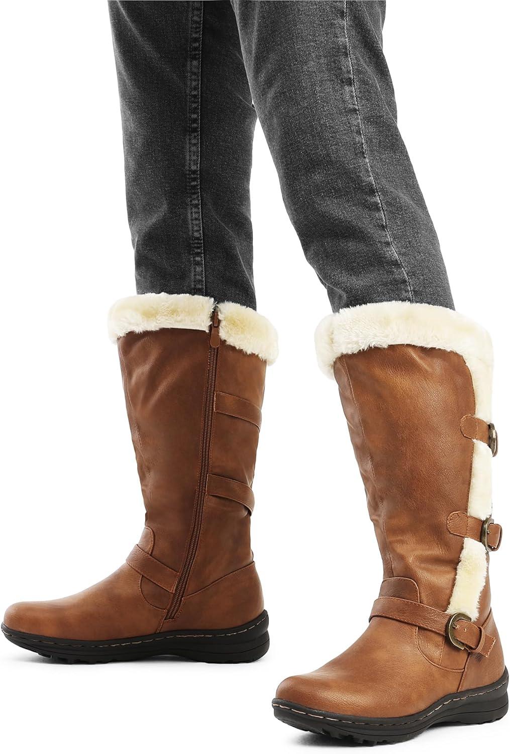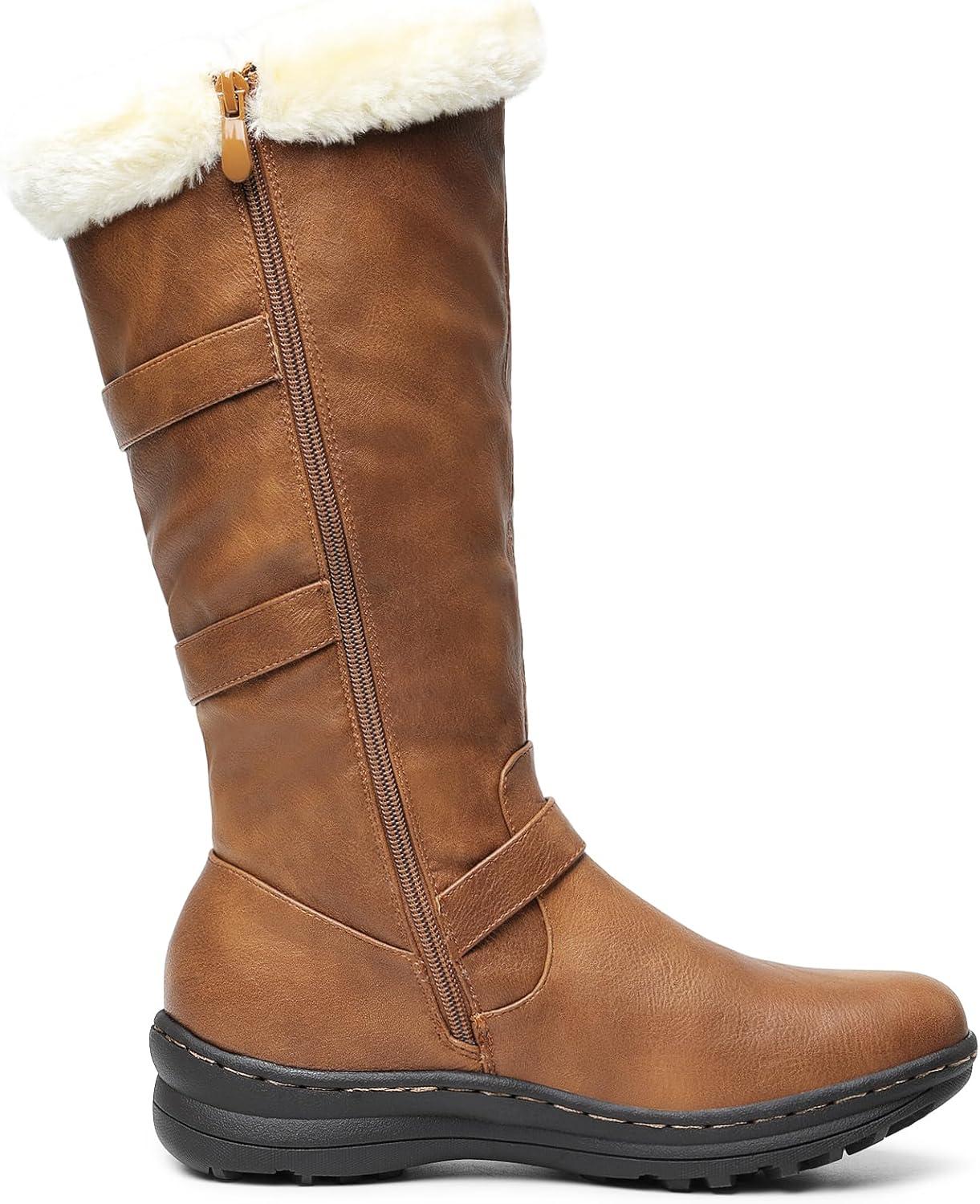 DREAM PAIRS Women’s Knee High Boots Thick Faux Fur Lined Winter Snow Warm Boots with Zipper(Camel)