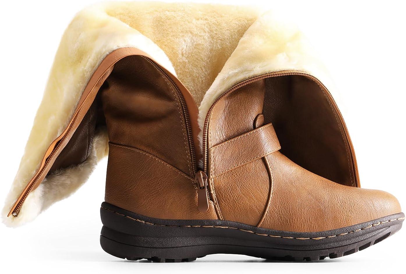 DREAM PAIRS Women’s Knee High Boots Thick Faux Fur Lined Winter Snow Warm Boots with Zipper(Rabbit-camel Pu)