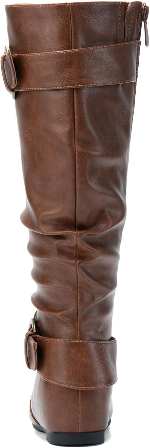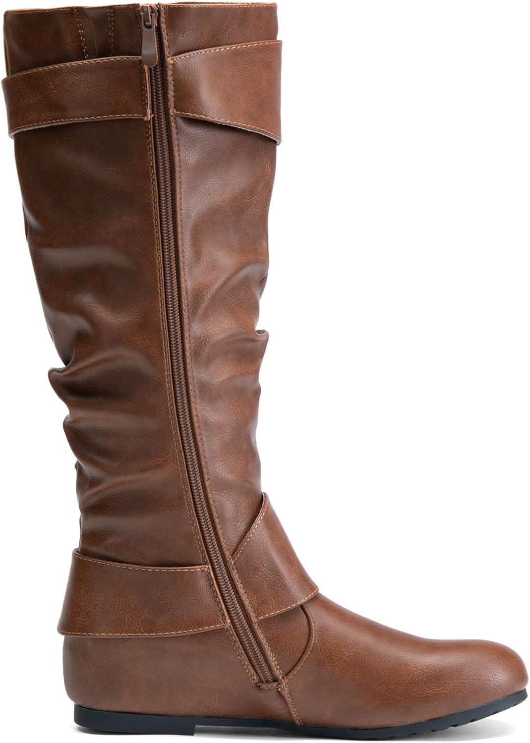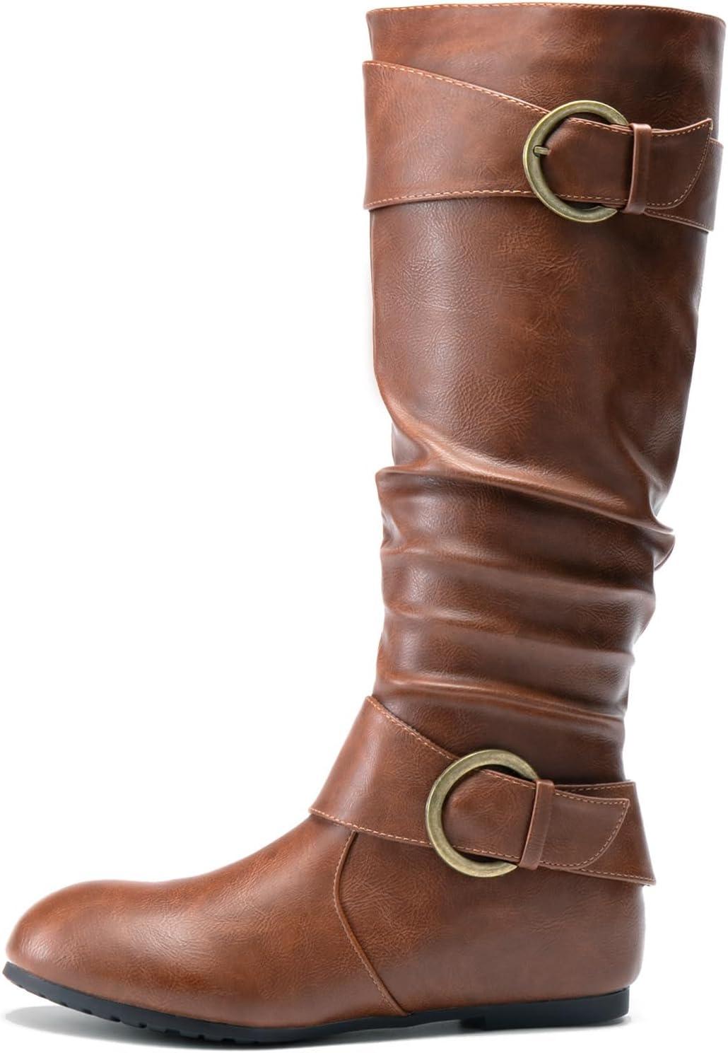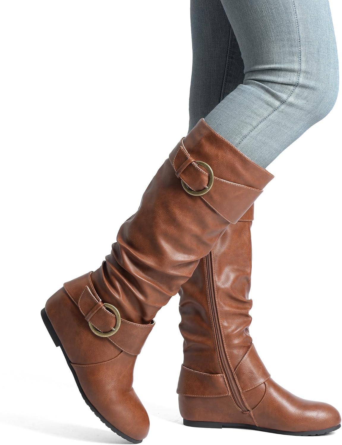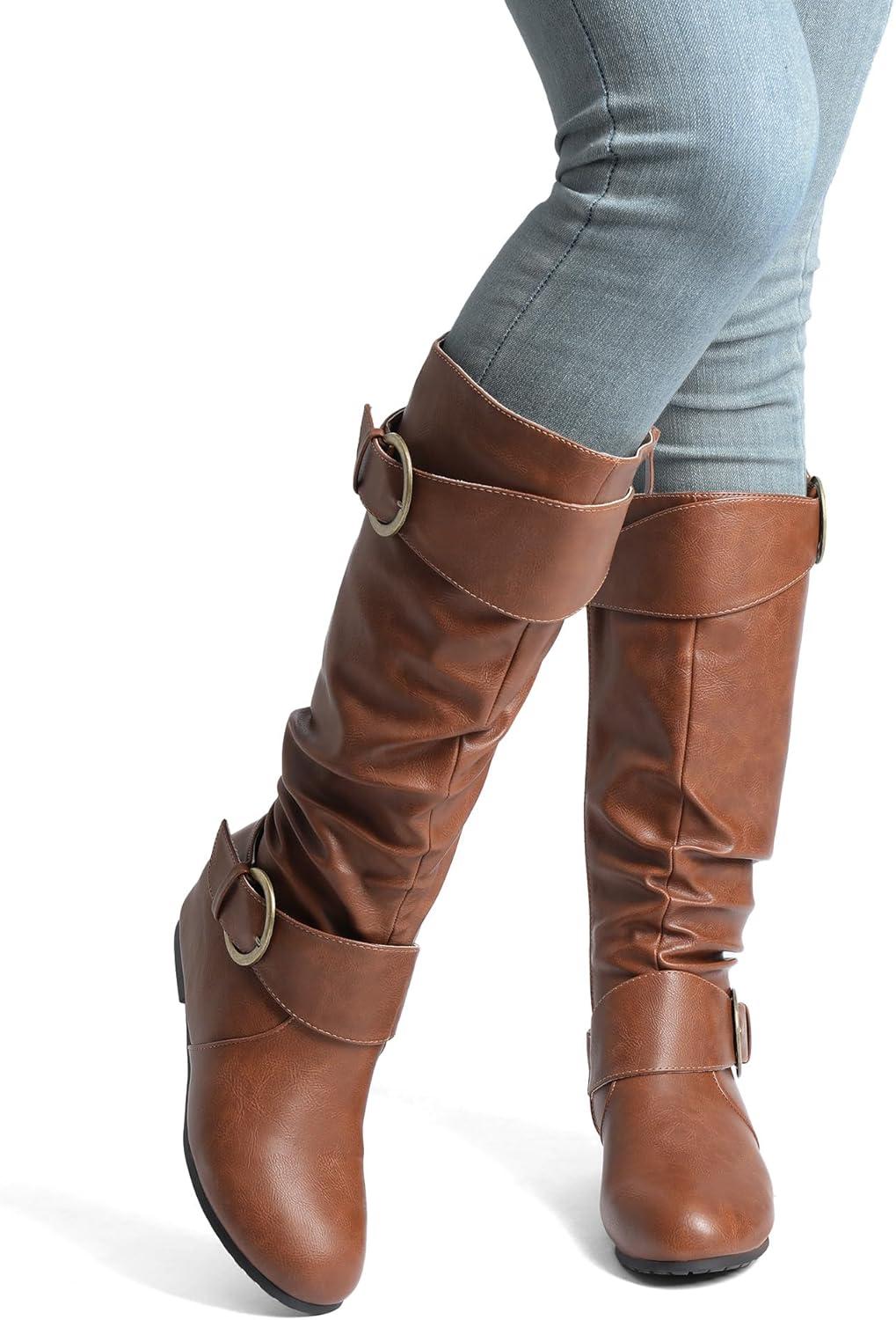 DREAM PAIRS Women’s Knee High Low Hidden Wedge Boots Suede Faux Fur Lining Side Zipper Knee High Buckle Boots(Light Brown)