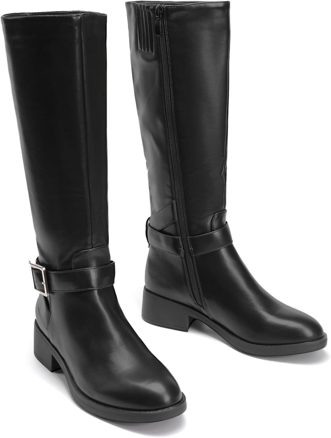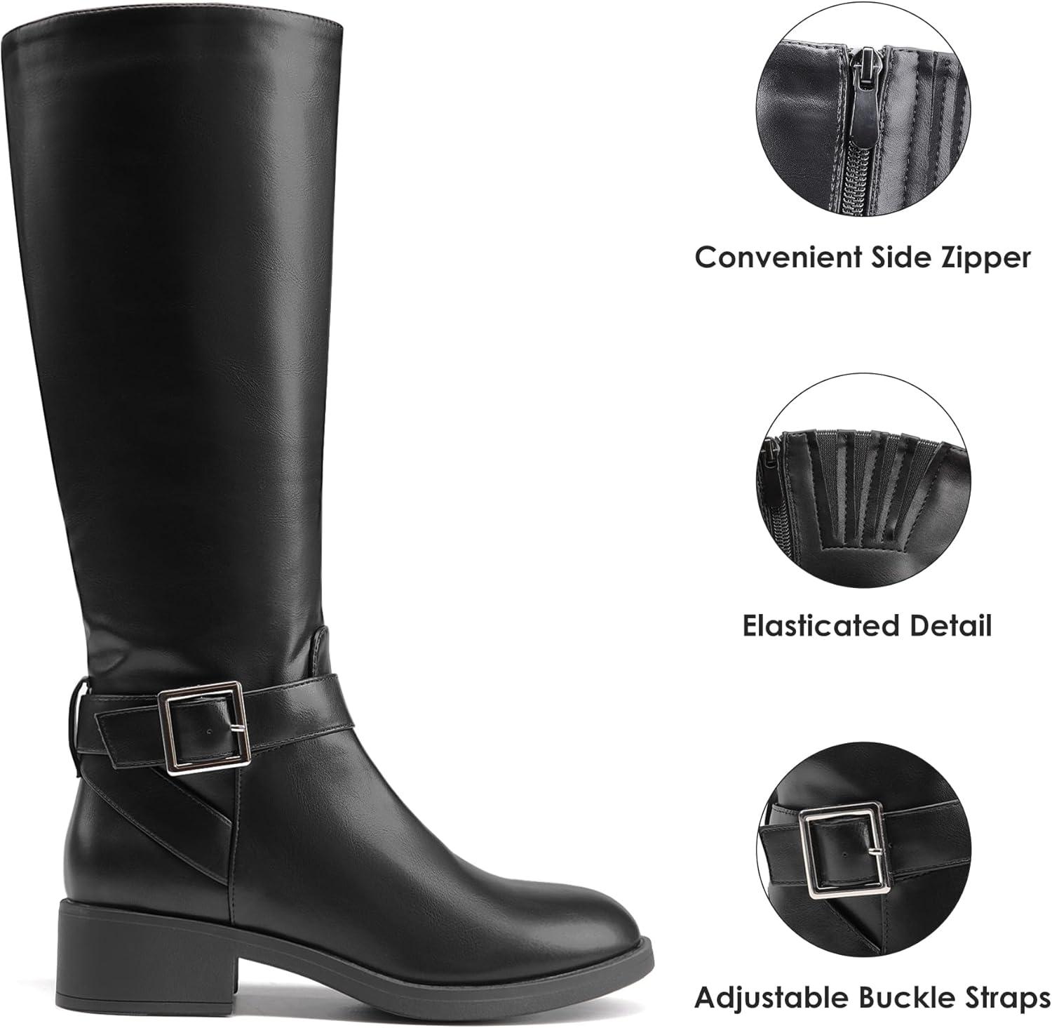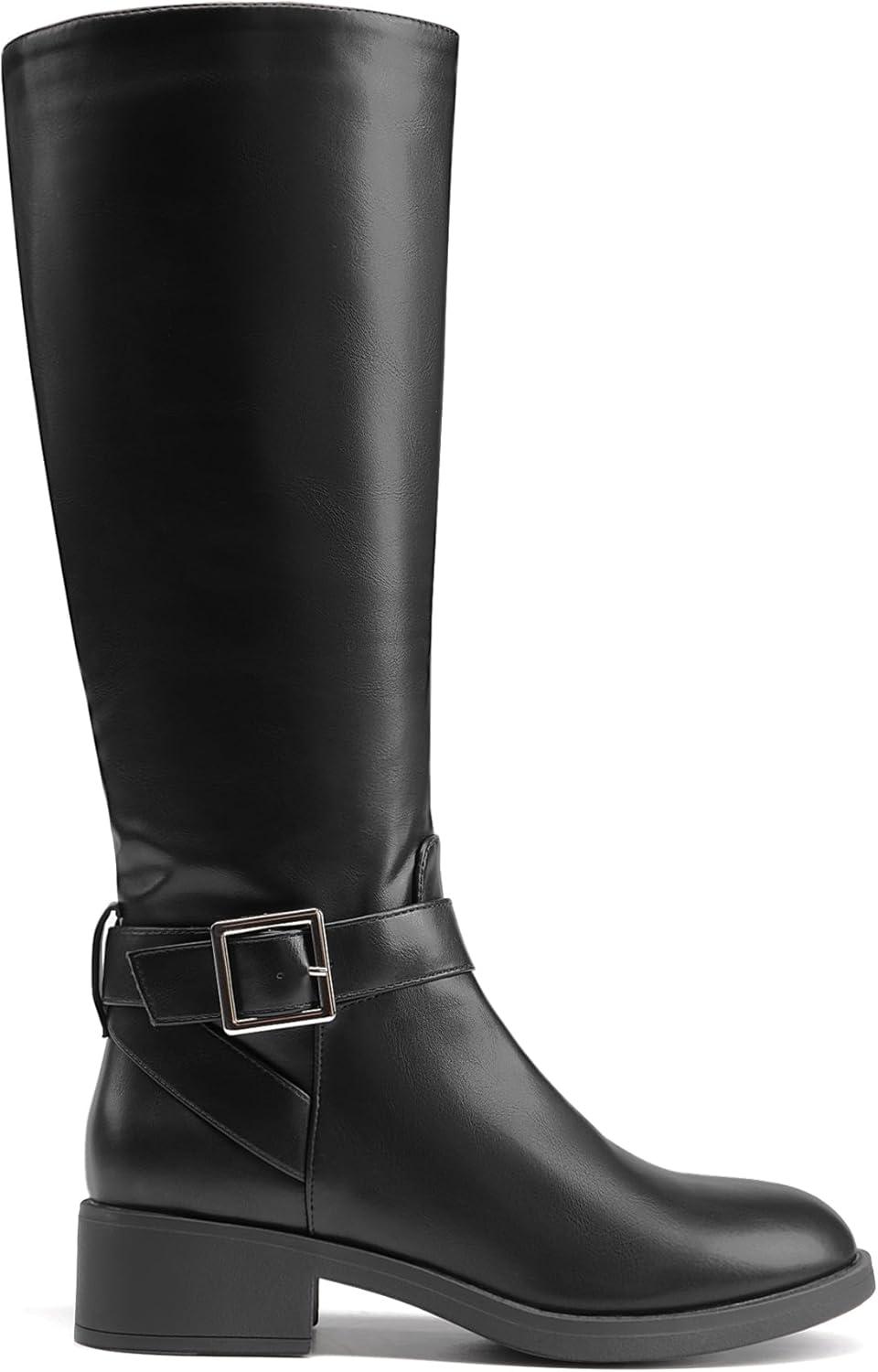DREAM PAIRS Women’s Knee High Riding Boots Comfortable Low Chunky Heel Side Zipper Round Toe Casual Classic Ranching(Black)