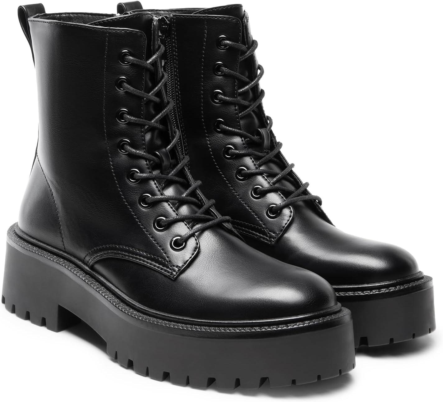 DREAM PAIRS Women’s Lace up Combat Ankle Boots Fashion Lug Sole Platform Booties Shoes,Size 8.5,BLACK-PU,SDAB2442W
