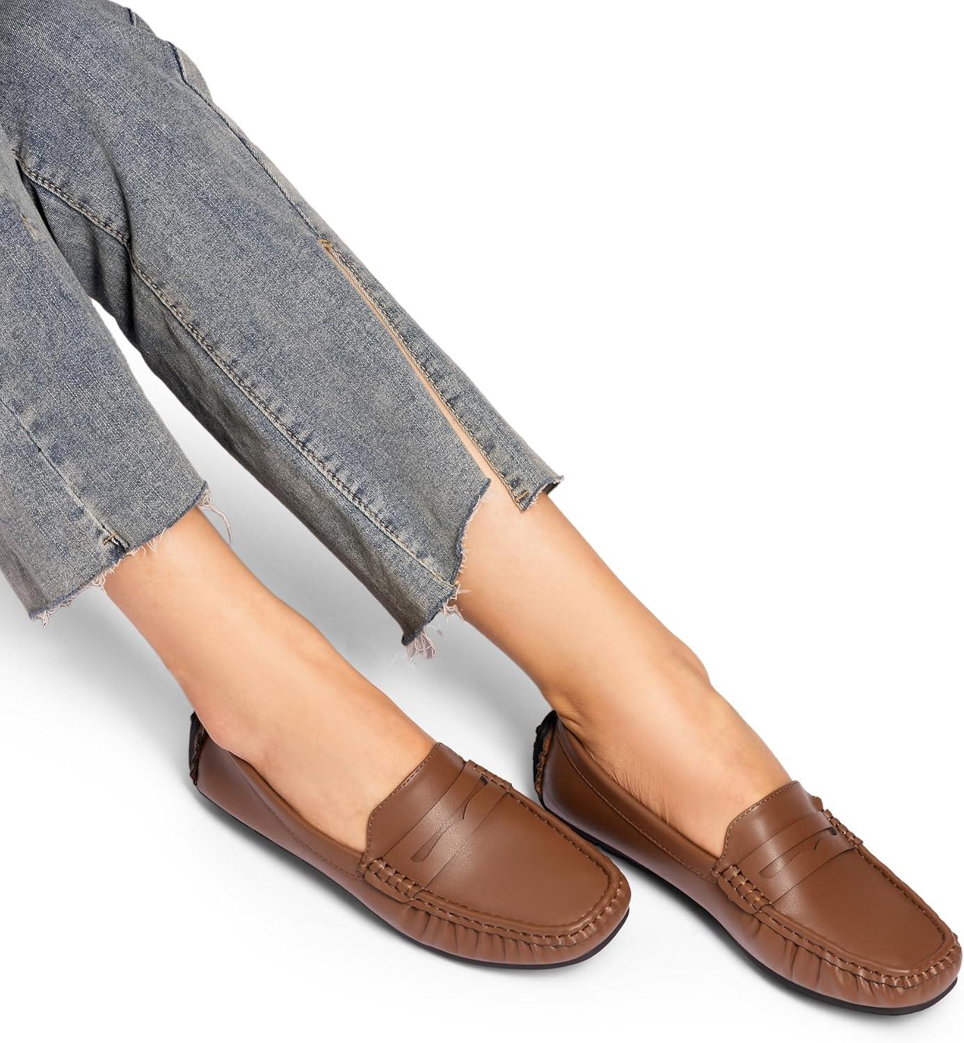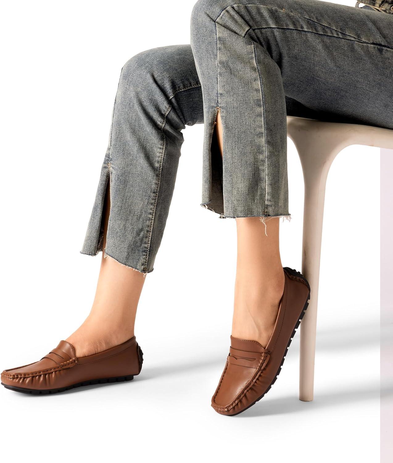DREAM PAIRS Women’s Loafers Penny Loafer Slip on Casual Dressy Comfortable Business Work Office Moccasins Driving Loafer Shoes(Brown-pu)