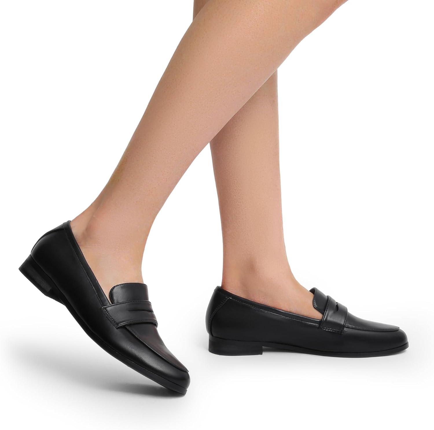 DREAM PAIRS Women’s Loafers Penny Loafers Fashion Comfortable Slip On Flats for Women Dressy Shoes Work Office,Size 8,Black-PU,SDLS2413W
