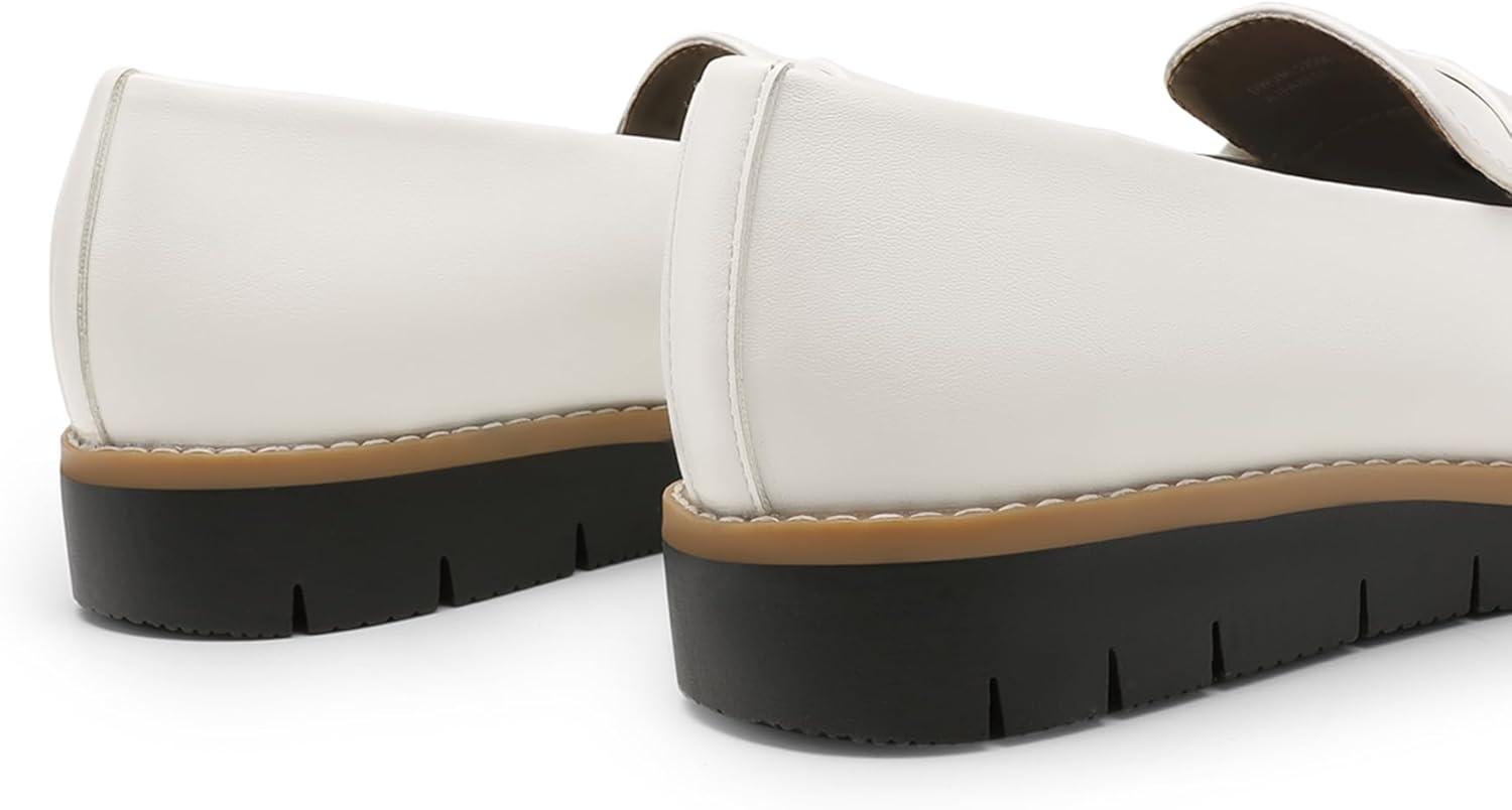 DREAM PAIRS Women’s Loafers, Slip-On Business Casual Work Shoes(White-pu)