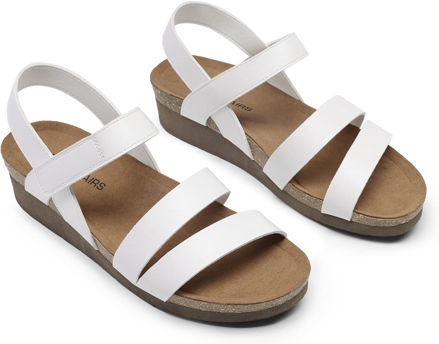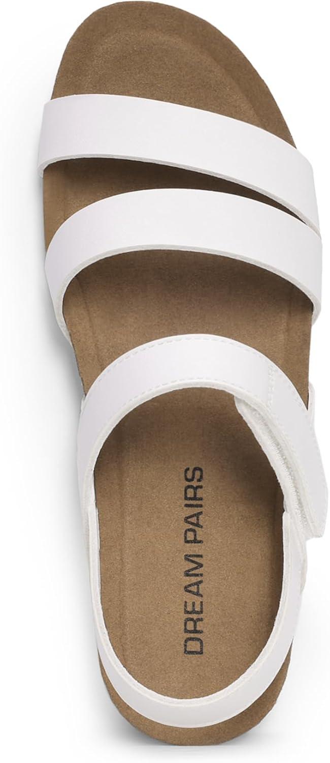 DREAM PAIRS Women’s Low Heel Wedge Sandals, Round-Toe Comfortable Casual Flatform Dress Shoes with Arch Support(White)