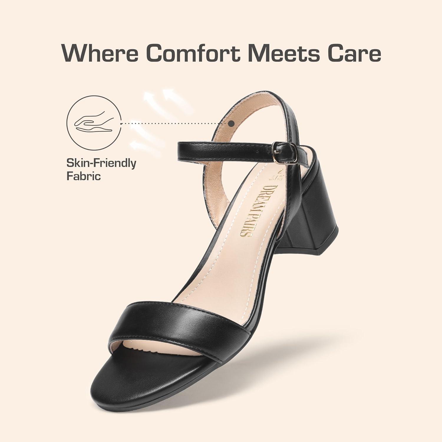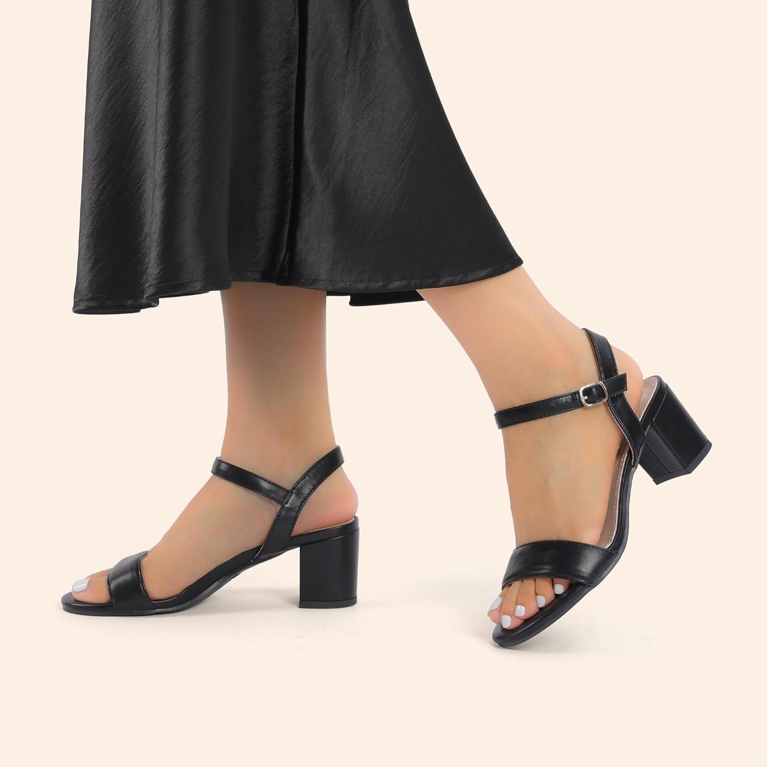 DREAM PAIRS Women’s Low Heels Block Open Toe Ankle Strap Classic Short Chunky Sandals with Buckle for Daily Work Wedding Party(Black-pu)