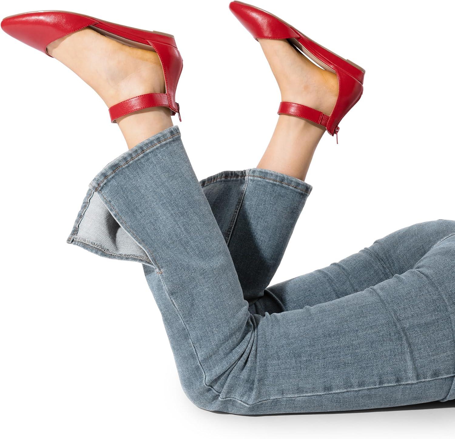 DREAM PAIRS Women’s Low Wedge Round Toe Ankle Strap Dress Comfortable Casual Flats Shoes(Red-pu-1)
