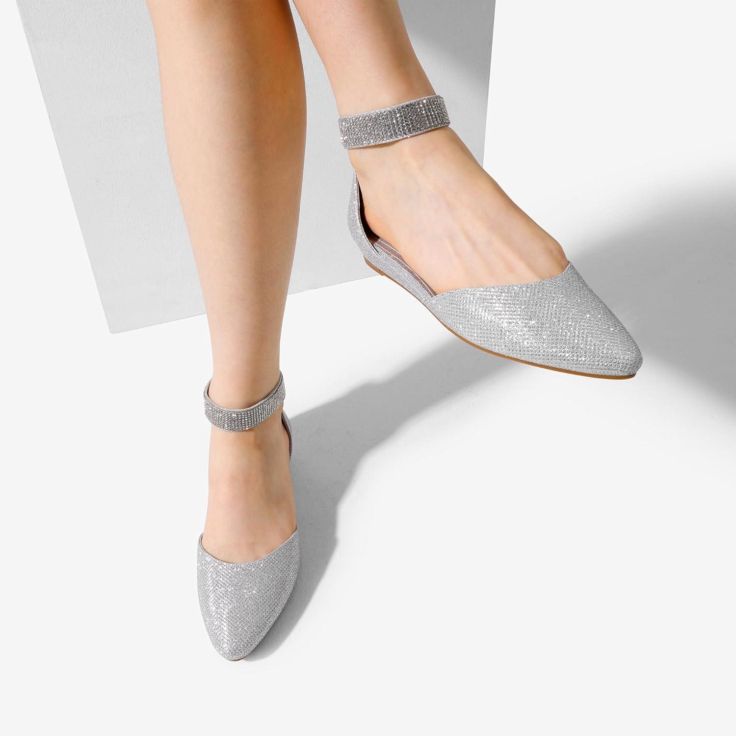 DREAM PAIRS Women’s Low Wedge Round Toe Ankle Strap Dress Comfortable Casual Flats Shoes(Silver/Glitter)