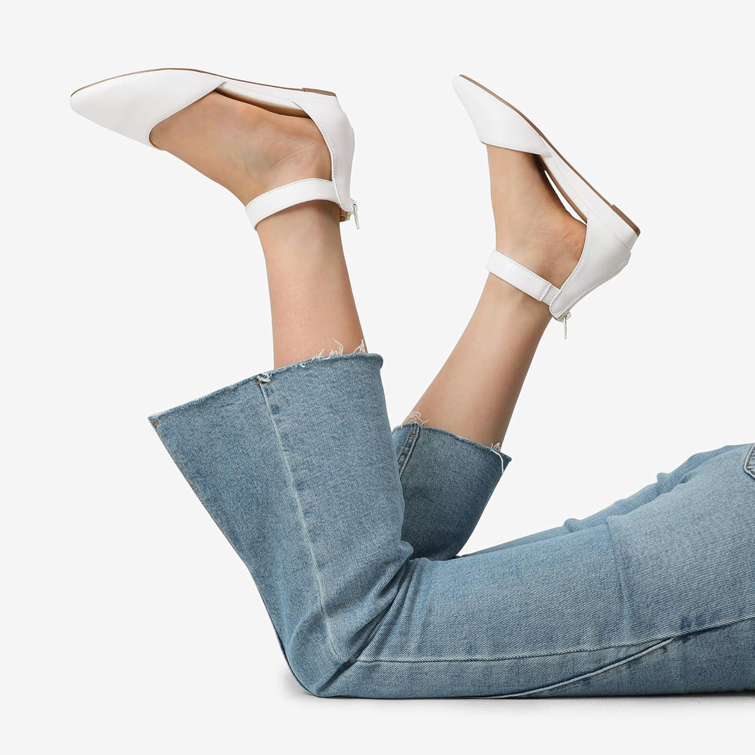 DREAM PAIRS Women’s Low Wedge Round Toe Ankle Strap Dress Comfortable Casual Flats Shoes(White/Pu)