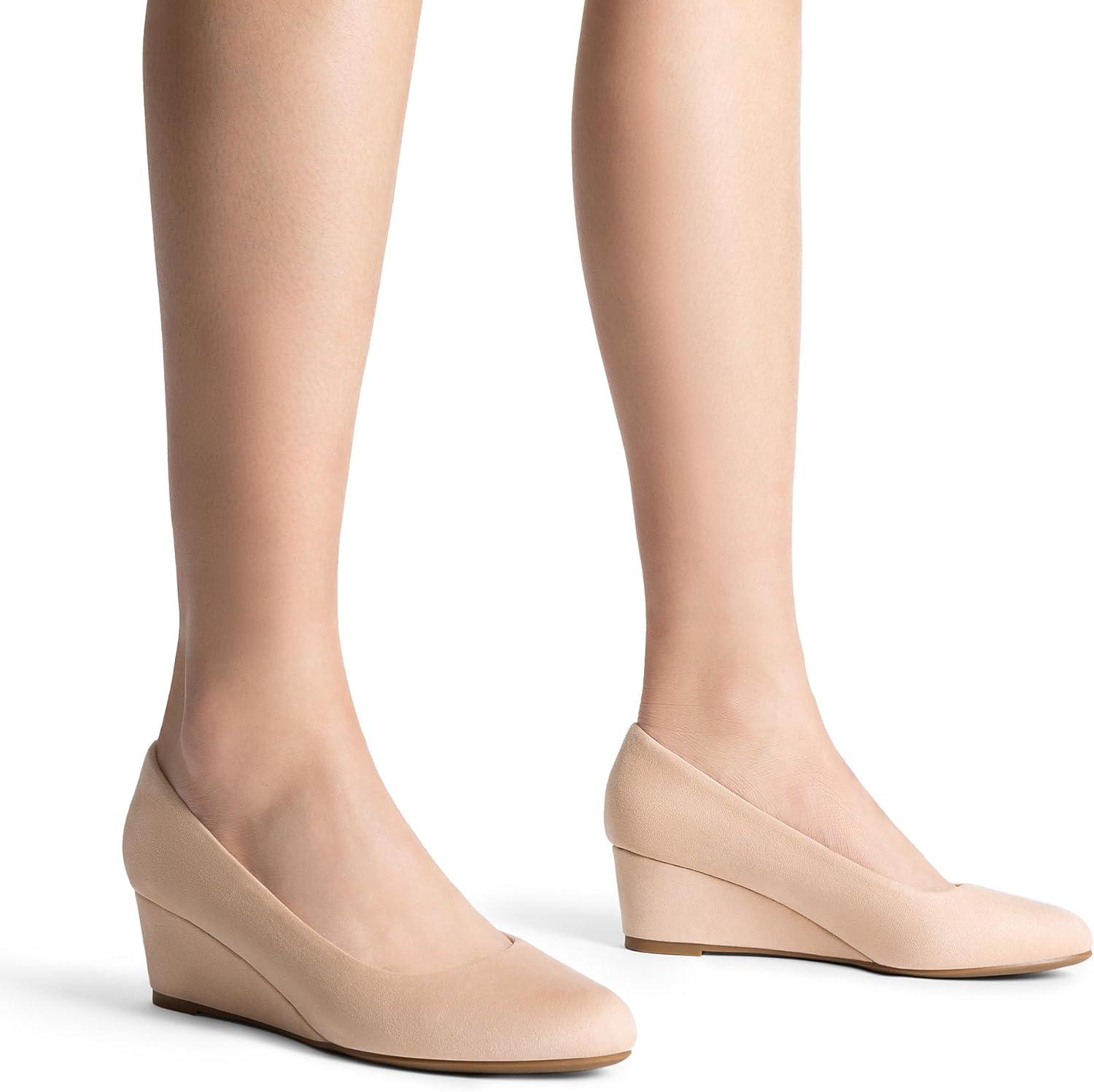 DREAM PAIRS Women’s Low Wedges Heels Closed Round Toe Pumps Comfortable Slip On Dress Work Wedding Shoes(Nude)