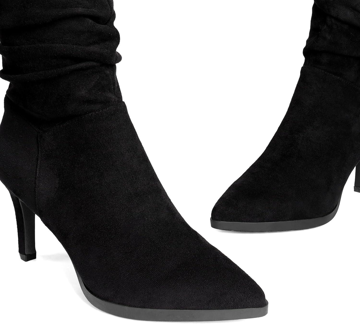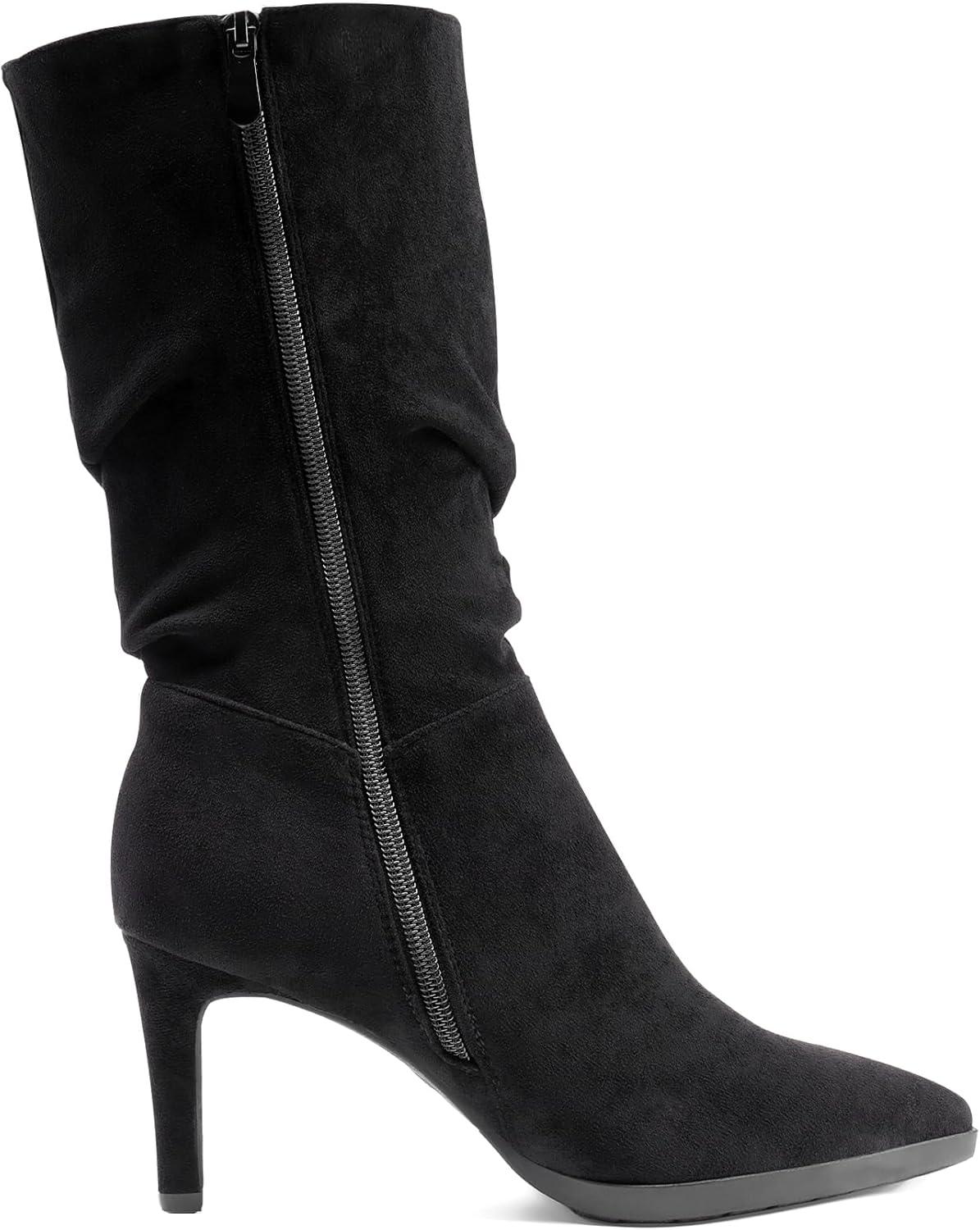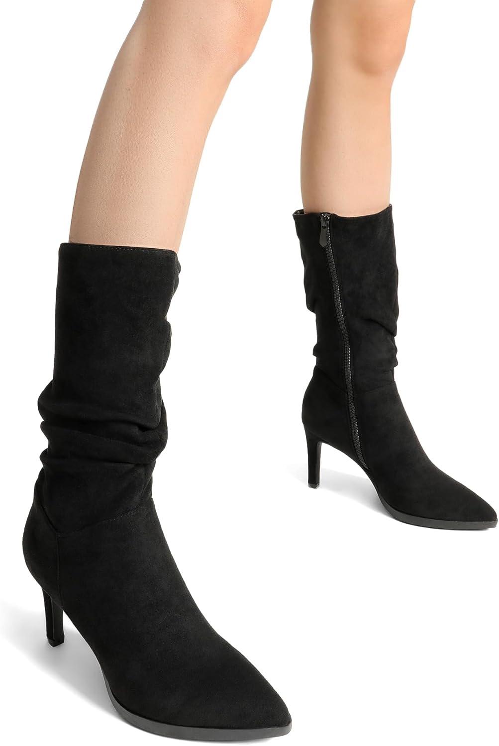 DREAM PAIRS Women’s Mid Calf Boots High Heels Pointed Toe Zip Fashion Dressy Boot(Black-suede)
