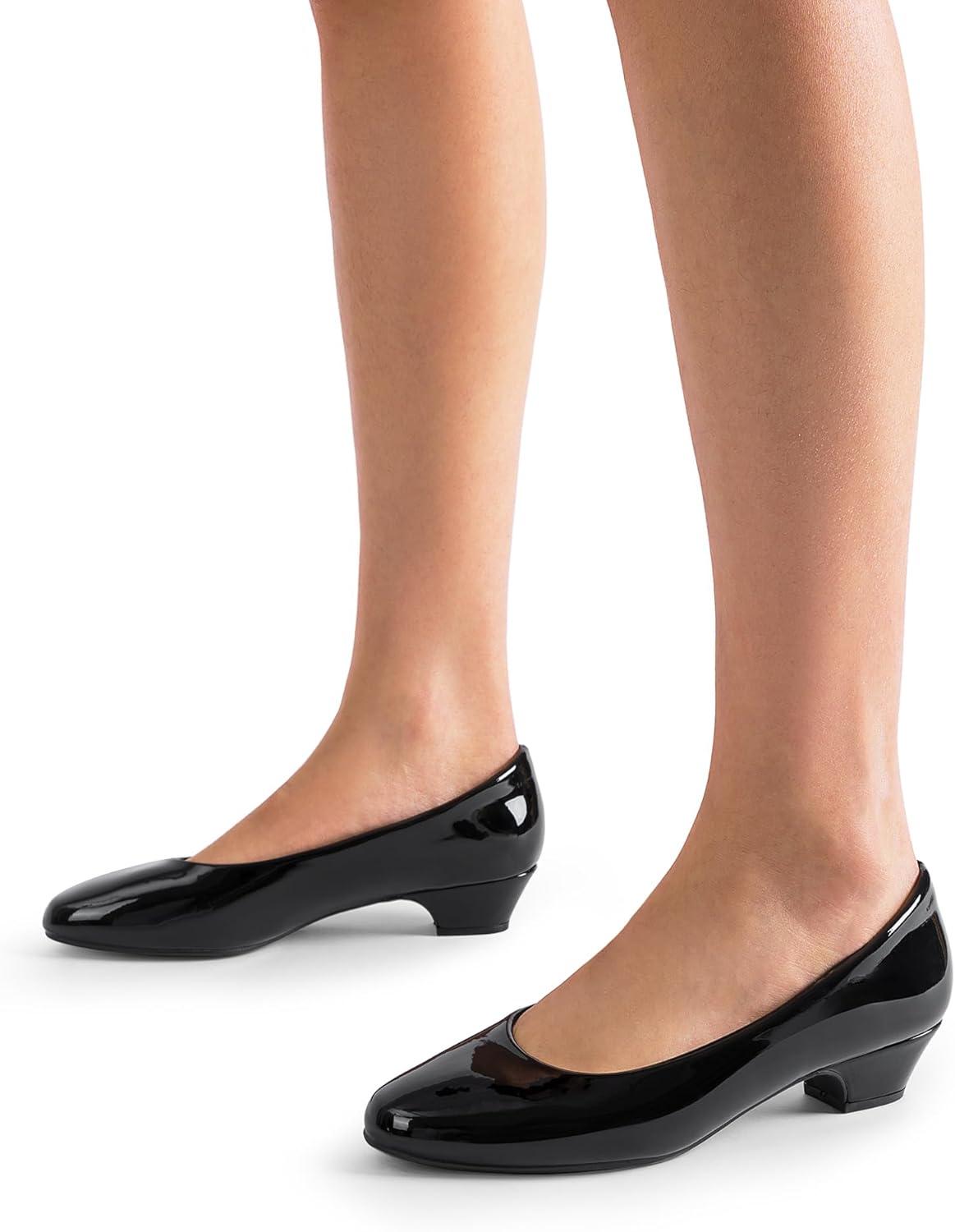 DREAM PAIRS Women’s Mila Low Chunky Heel Pump Shoes(Black-pat)
