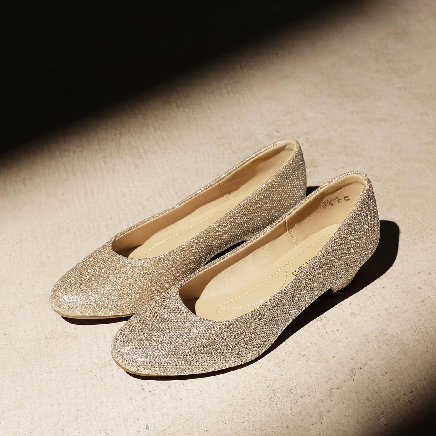 DREAM PAIRS Women’s Mila Low Chunky Heel Pump Shoes(Gold/Glitter)