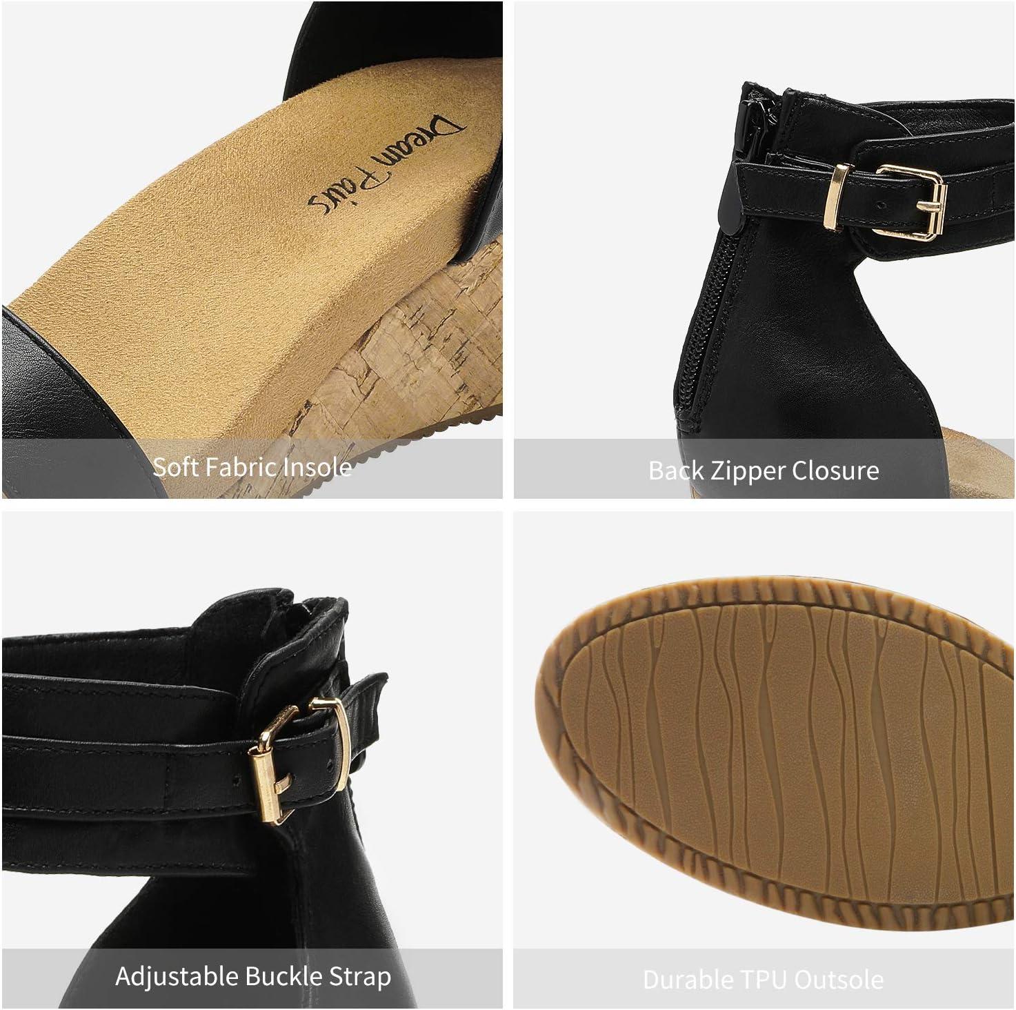 DREAM PAIRS Women’s Open Toe Buckle Ankle Strap Platform Wedge Sandals Summer Shoes.(Black/Pu)