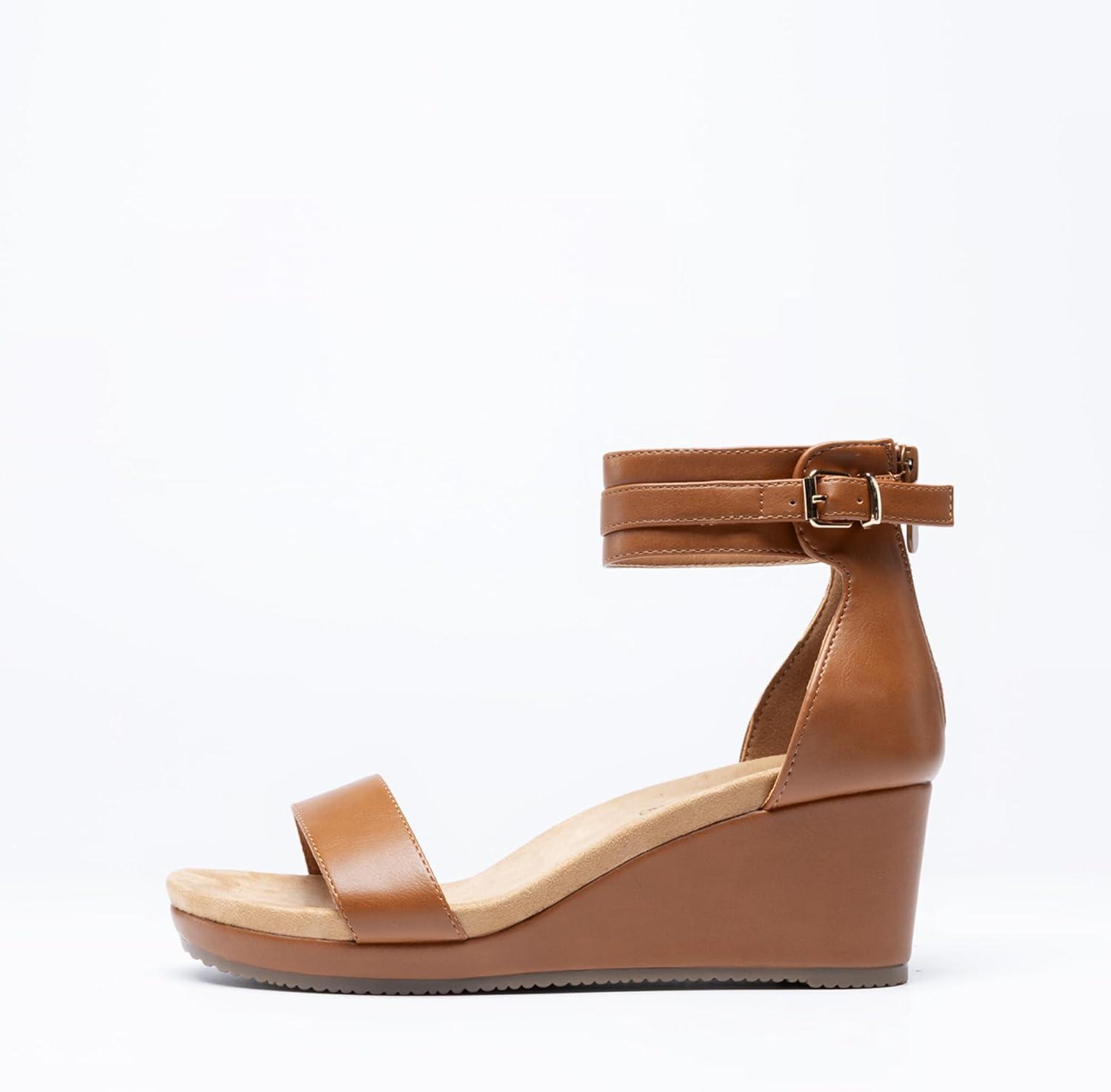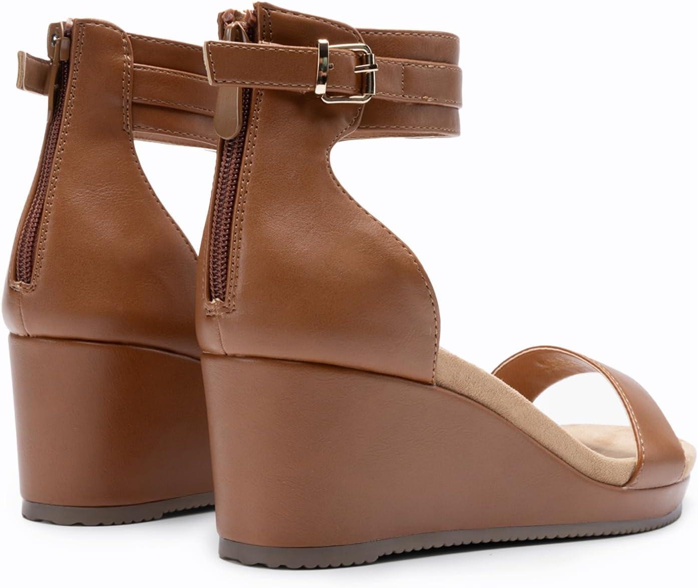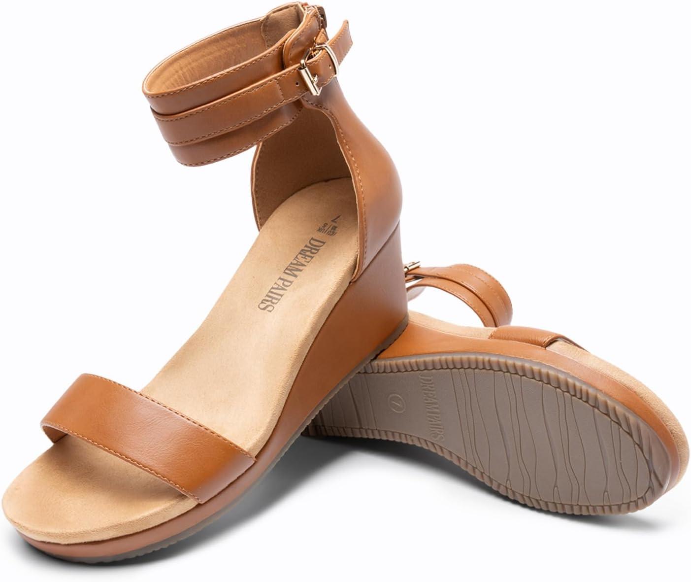 DREAM PAIRS Women’s Open Toe Buckle Ankle Strap Platform Wedge Sandals Summer Shoes.(Camel/Pu)