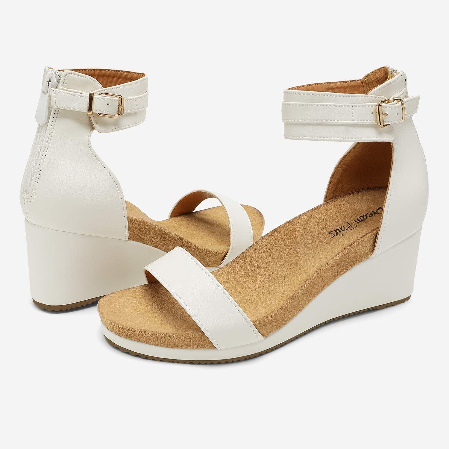 DREAM PAIRS Women’s Open Toe Buckle Ankle Strap Platform Wedge Sandals Summer Shoes.(White/Pu)
