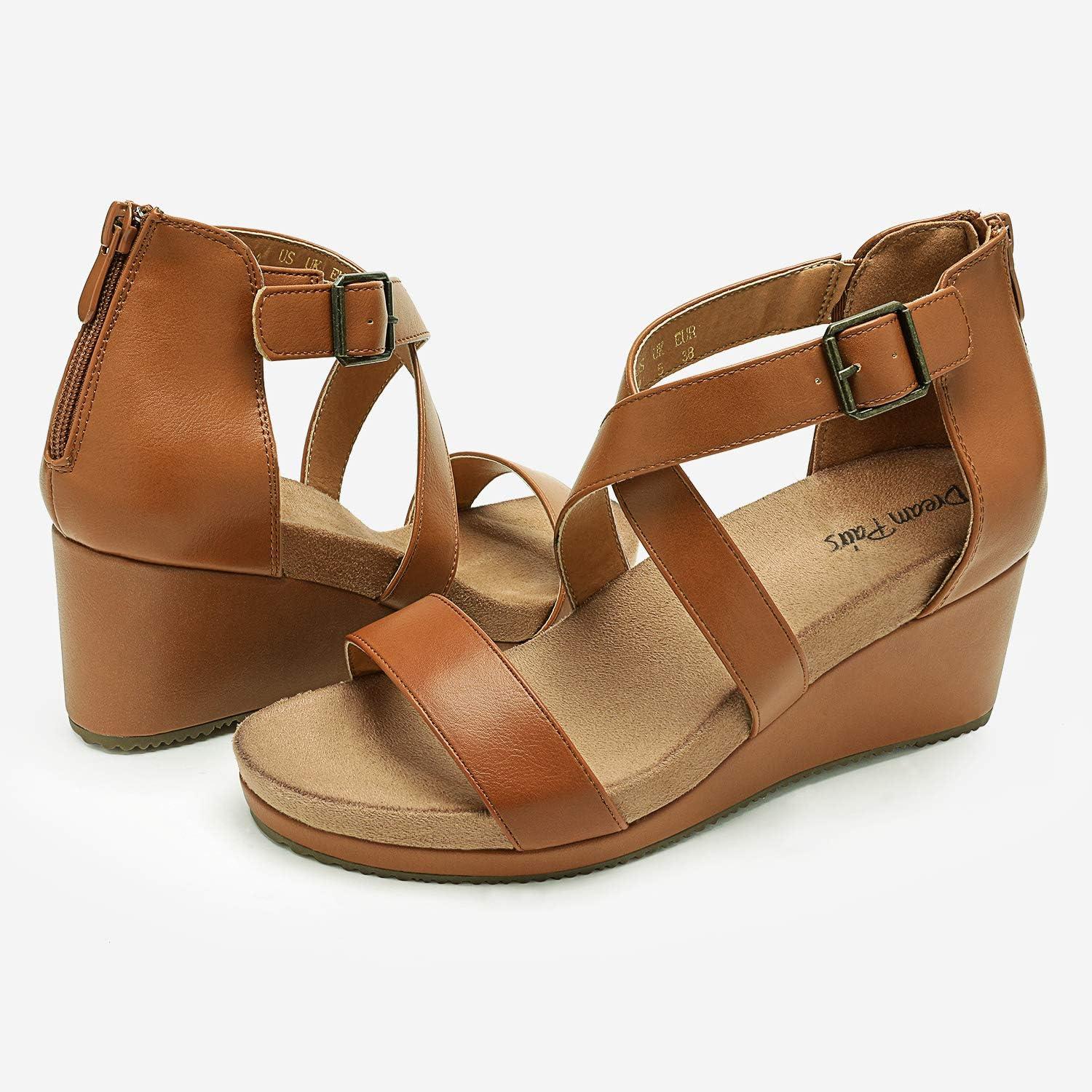 DREAM PAIRS Women’s Open Toe Buckle Ankle Strap Summer Platform Wedge Sandals(Camel/Pu)