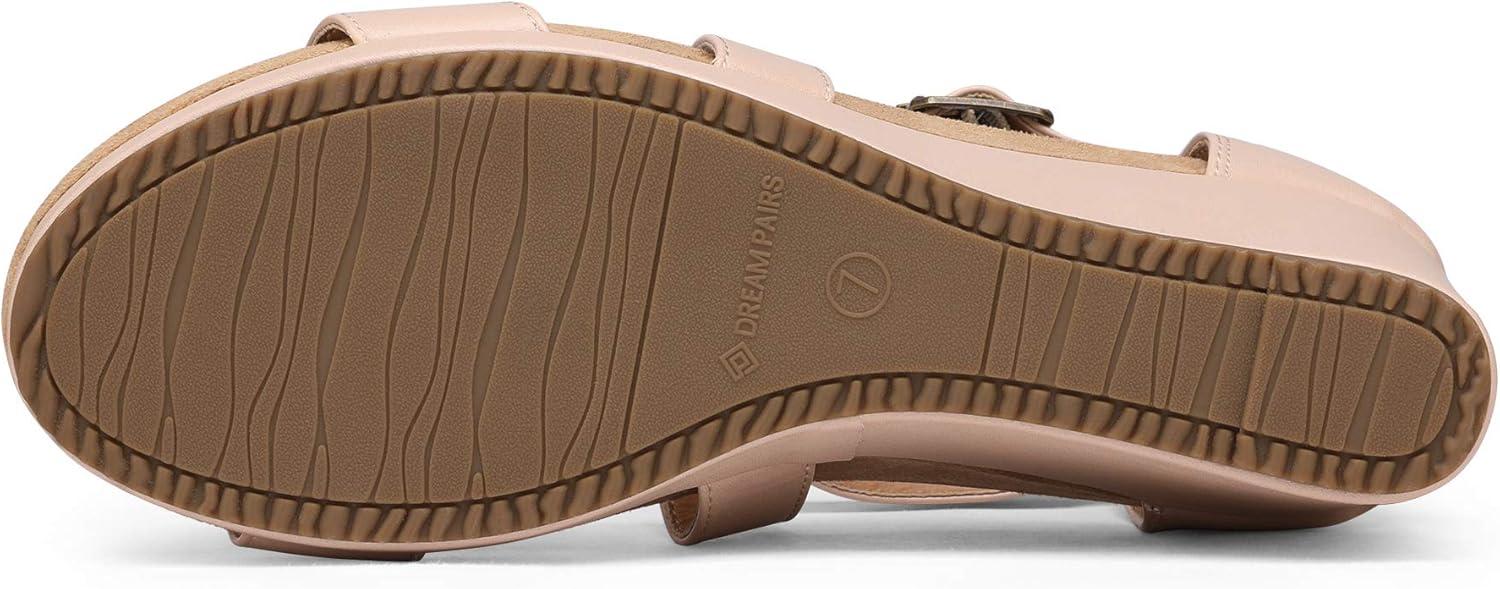 DREAM PAIRS Women’s Open Toe Buckle Ankle Strap Summer Platform Wedge Sandals(Nude/Pu)